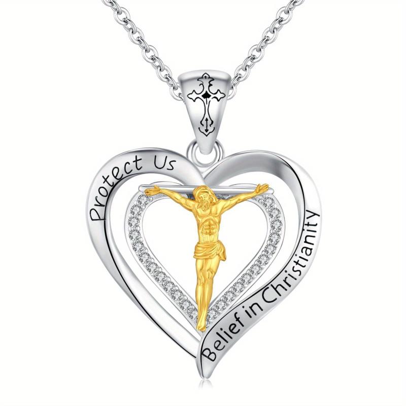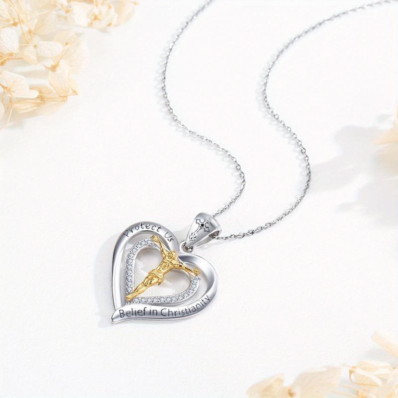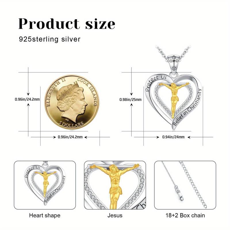 This 925 sterling silver Jesus pendant heart necklace is a symbol of faith and protection. It is a beautiful piece of Catholic jewelry suitable for women and mothers.