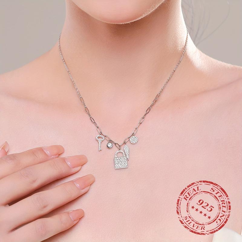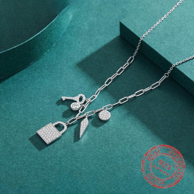 This charming necklace features a key lock geometric pendant, making it perfect for weddings and engagements. Crafted from pure 925 sterling silver.
