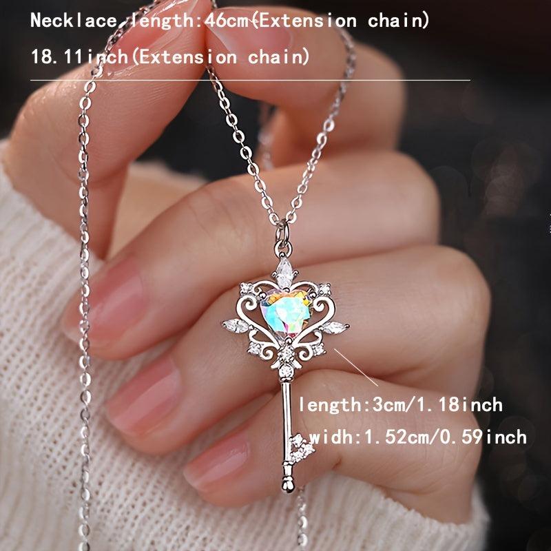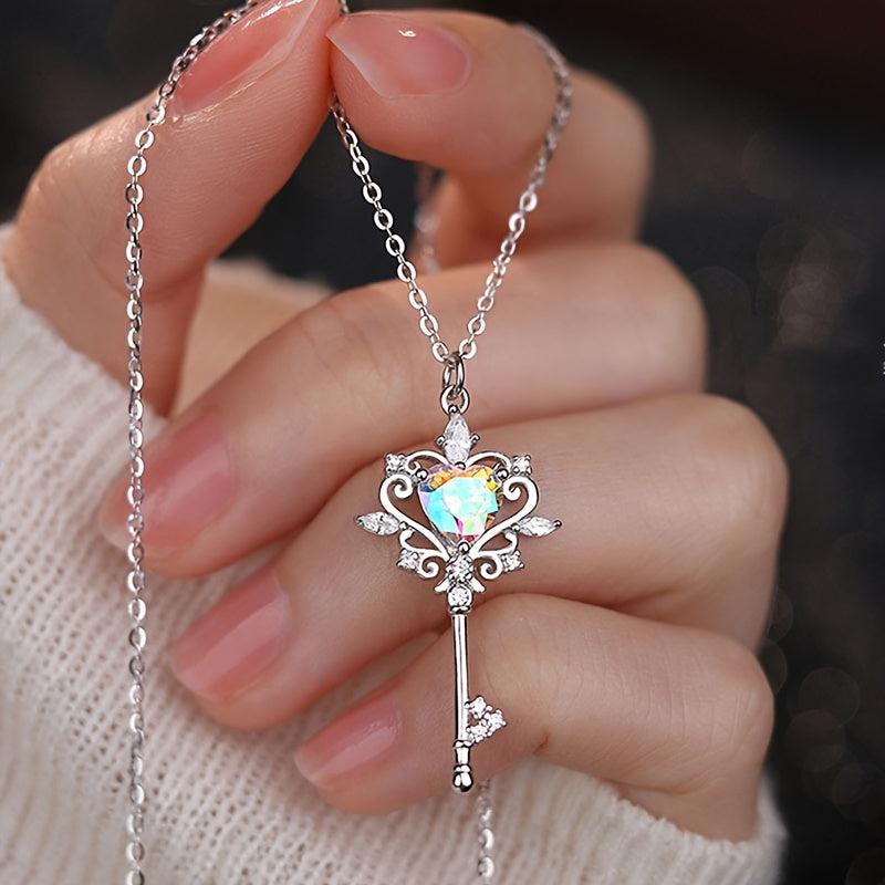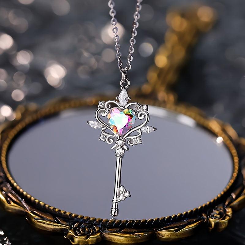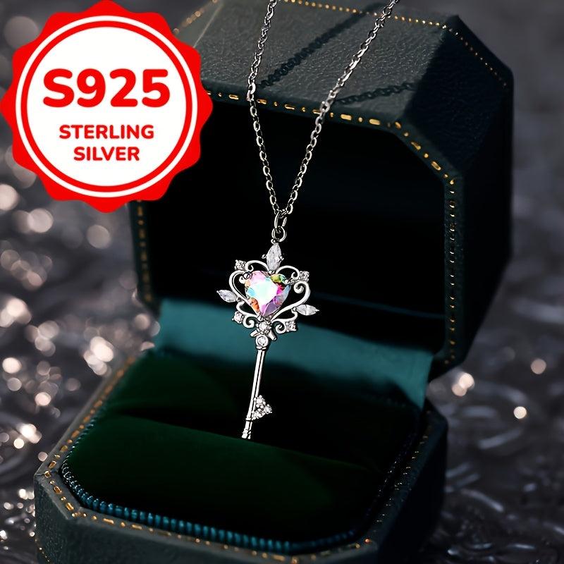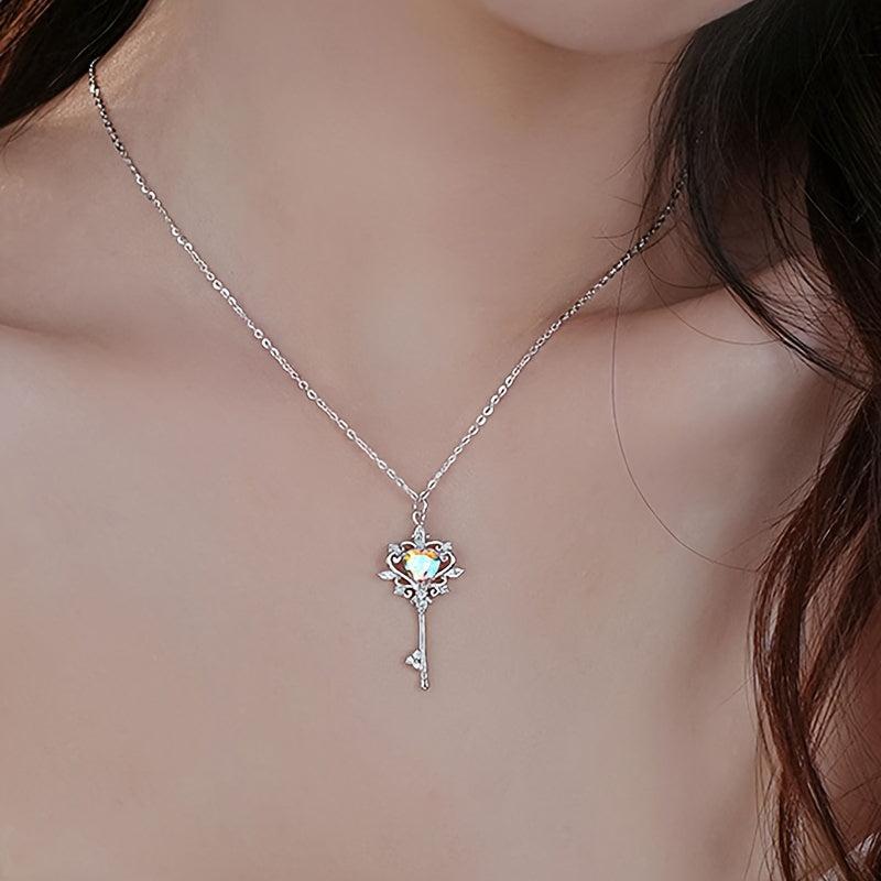 This 925 silver key necklace features a fairy tale design that adds a touch of magic to your look. The high-end versatile jewelry is perfect for those who love fantasy and fairy tales. Part of the Fairy Tale Forest Series.