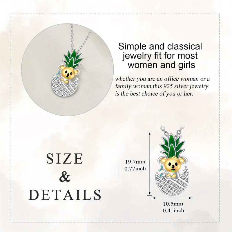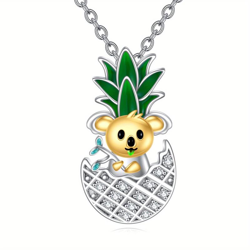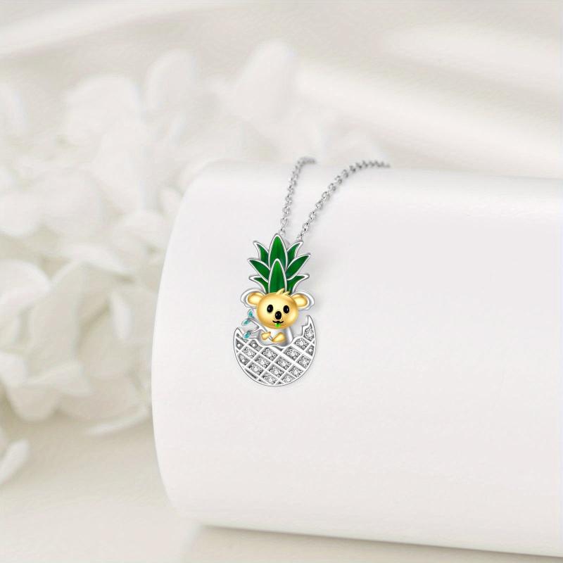 This elegant pendant necklace features a dainty koala and pineapple design, crafted from genuine 925 sterling silver. It makes a perfect gift for women who appreciate unique jewelry pieces.