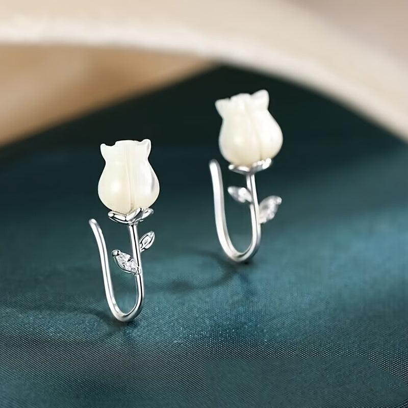 These elegant floral leaf earrings are crafted from 925 silver with synthetic stone, making them perfect for everyday wear. Featuring a minimalist design with leaf accents, they are ideal for casual attire or as a thoughtful gift.