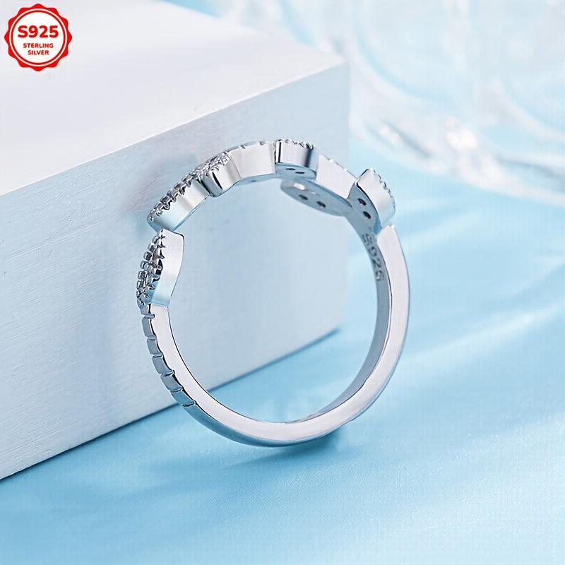 • 925 Sterling Silver leaf ring with Cubic Zirconia stones