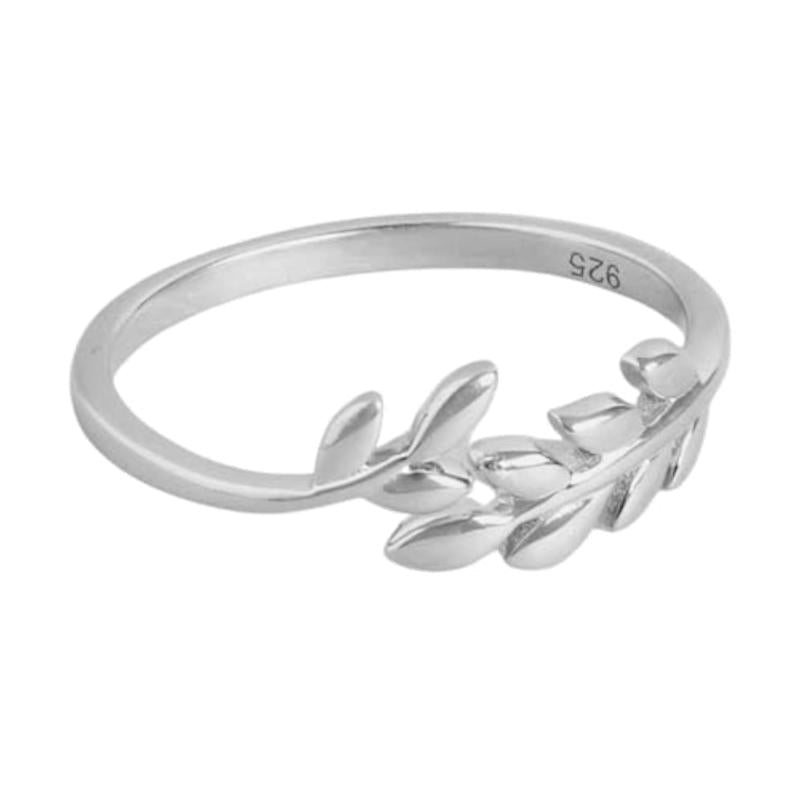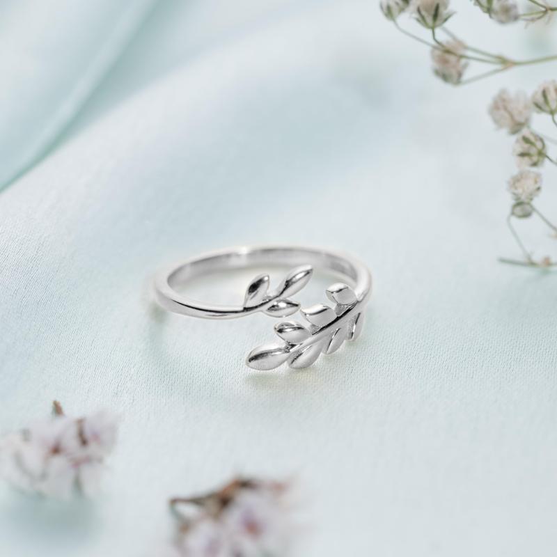 This stunning rhodium plated leaf ring is crafted from 925 sterling silver with intricate leaf design. It features a 925 hallmark for authenticity.
