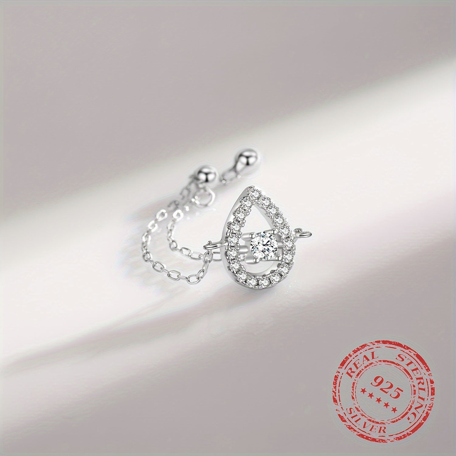 This stunning 925 sterling silver ring features a sparkling water drop clear CZ design. It is a perfect addition to your fine jewelry collection.