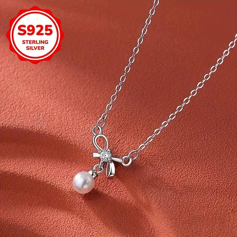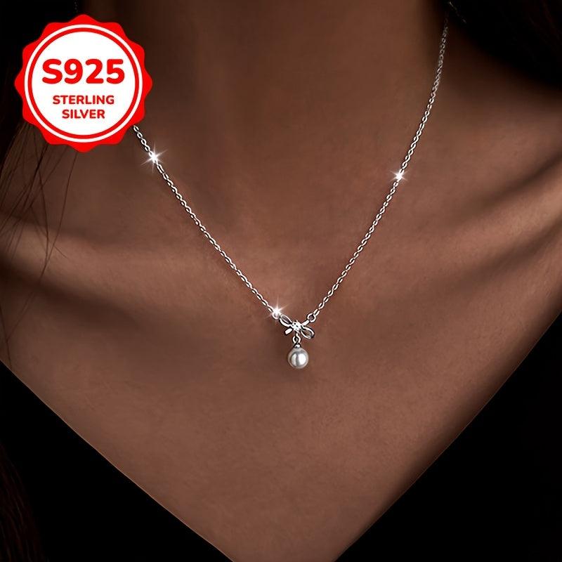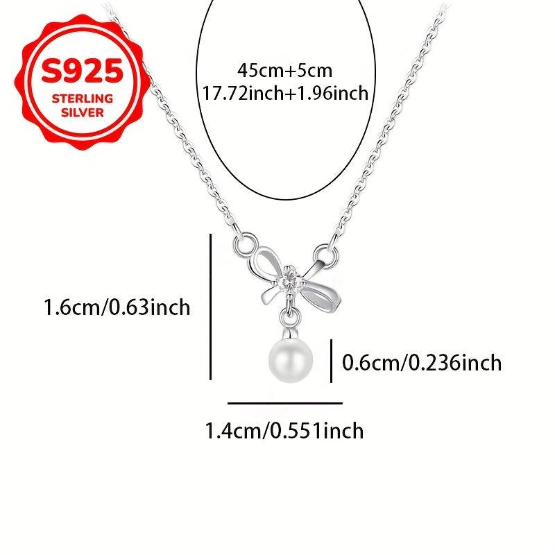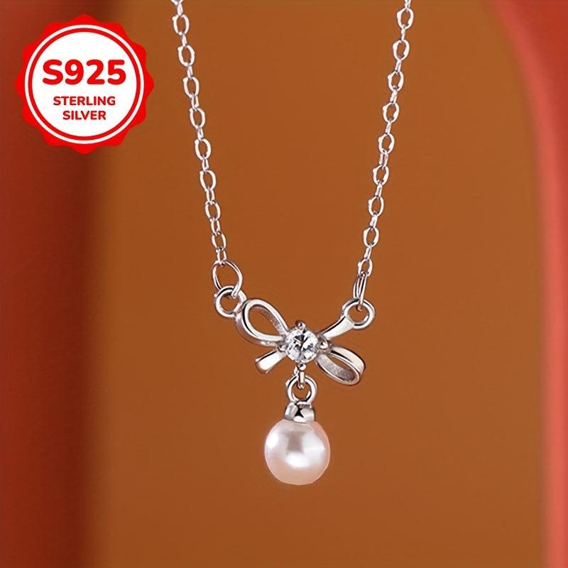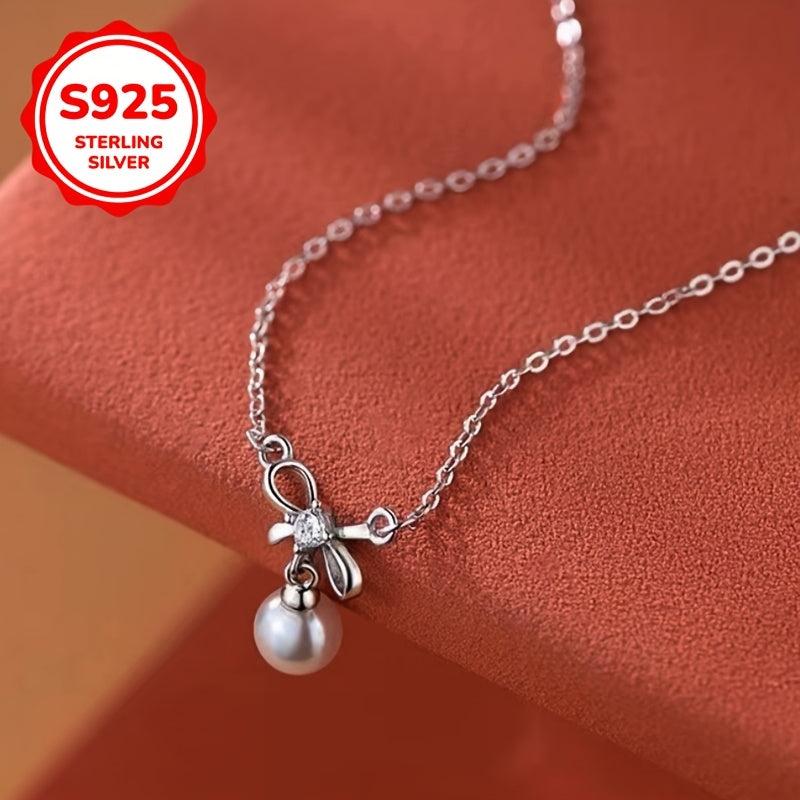Elegant 925 silver necklace with a single bow freshwater pearl pendant, designed for a light feel suitable for all occasions.