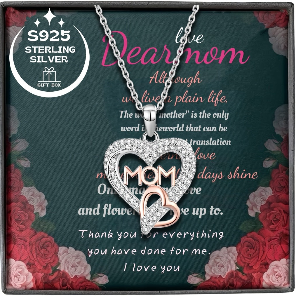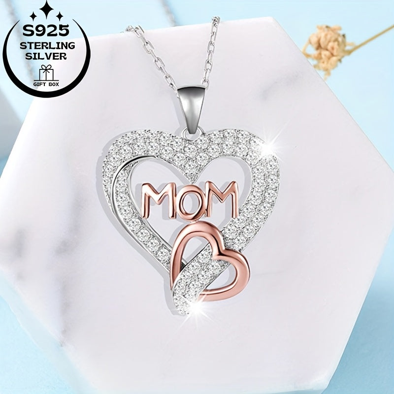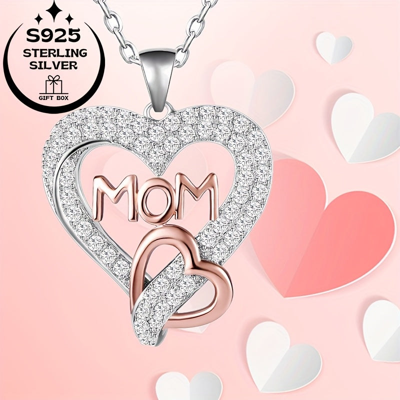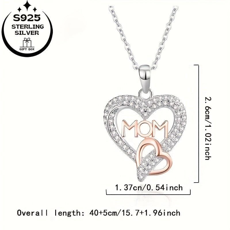 Show your love and appreciation for mom with this exquisite 925 sterling silver heart pendant necklace adorned with sparkling cubic zirconia. Ideal for daily wear, holidays, and special occasions.