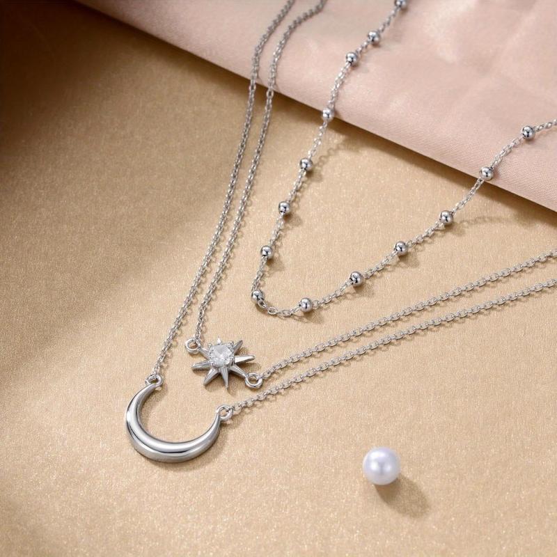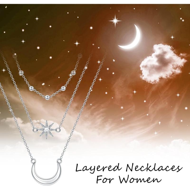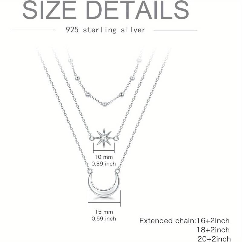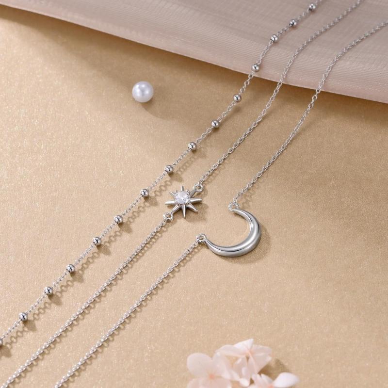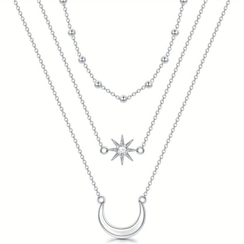 This elegant necklace features a 925 sterling silver moon and star pendant on a 3-layer chain. Perfect for gifting to your wife, girlfriend, mom, daughter, or sister on any special occasion.
