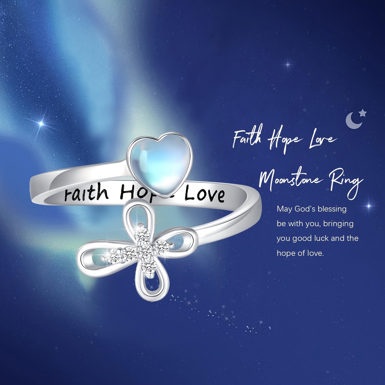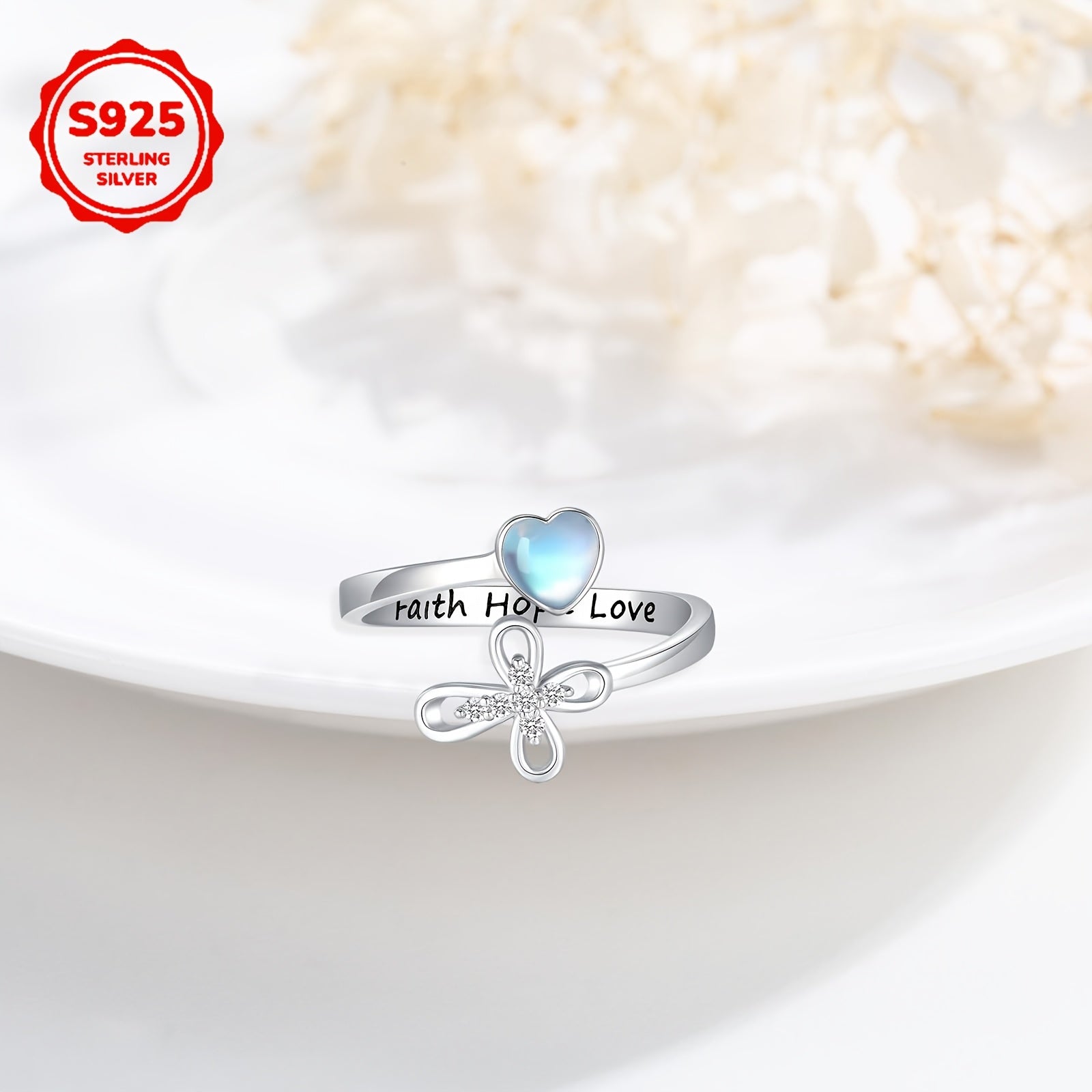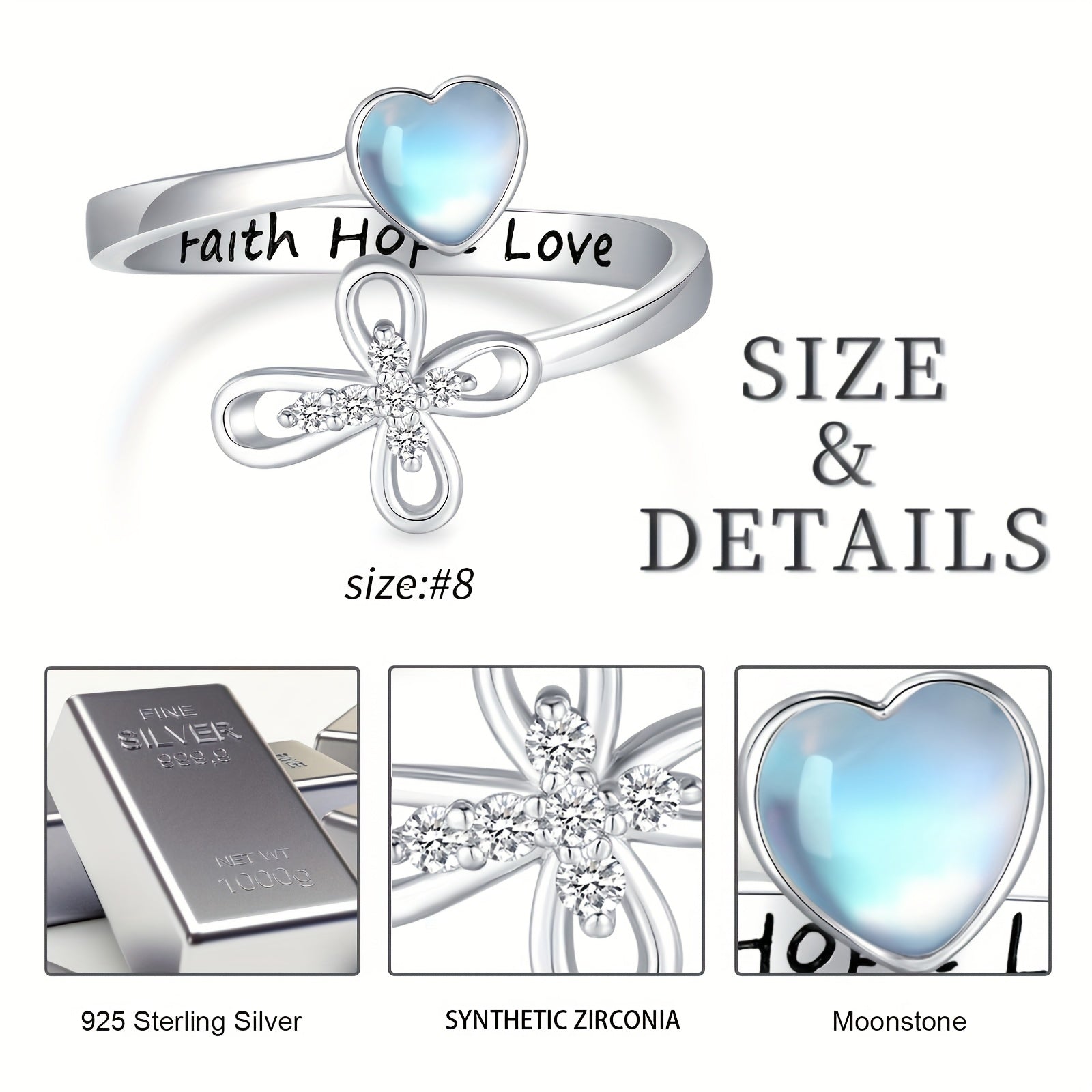 This beautiful moonstone ring is made of 925 sterling silver, featuring a cross design with a heart-shaped moonstone. Perfect as a holiday or Valentine's gift for women.