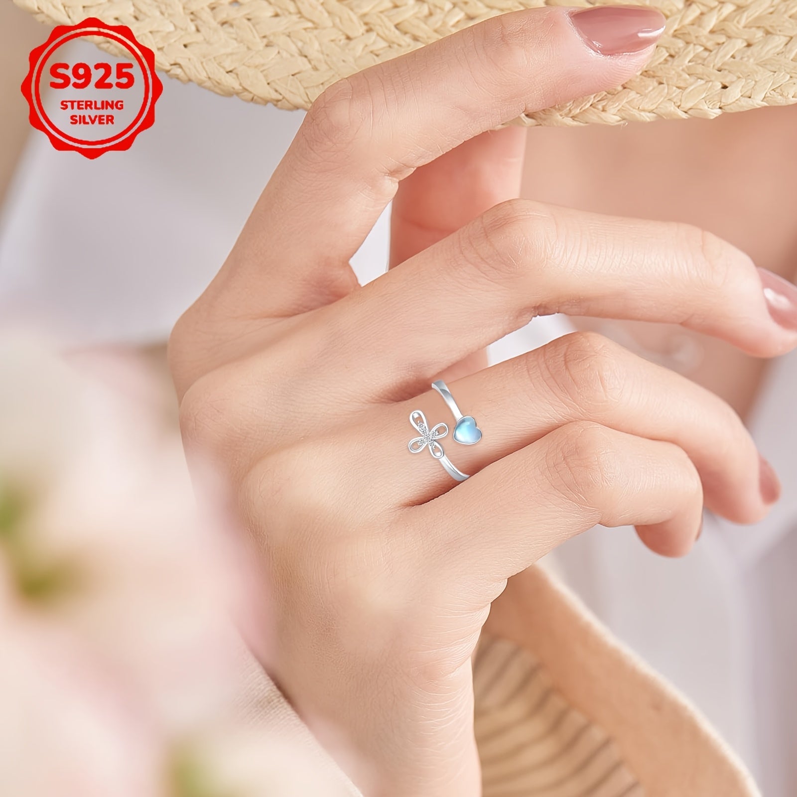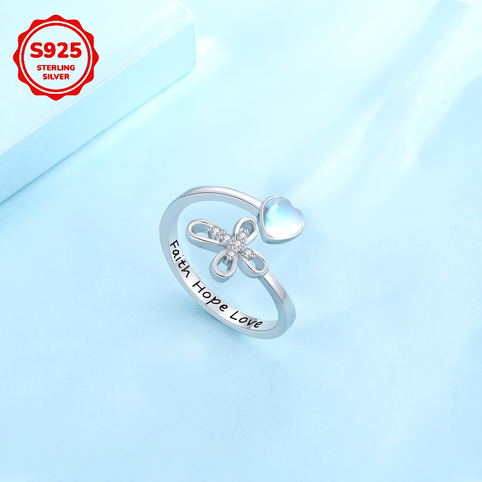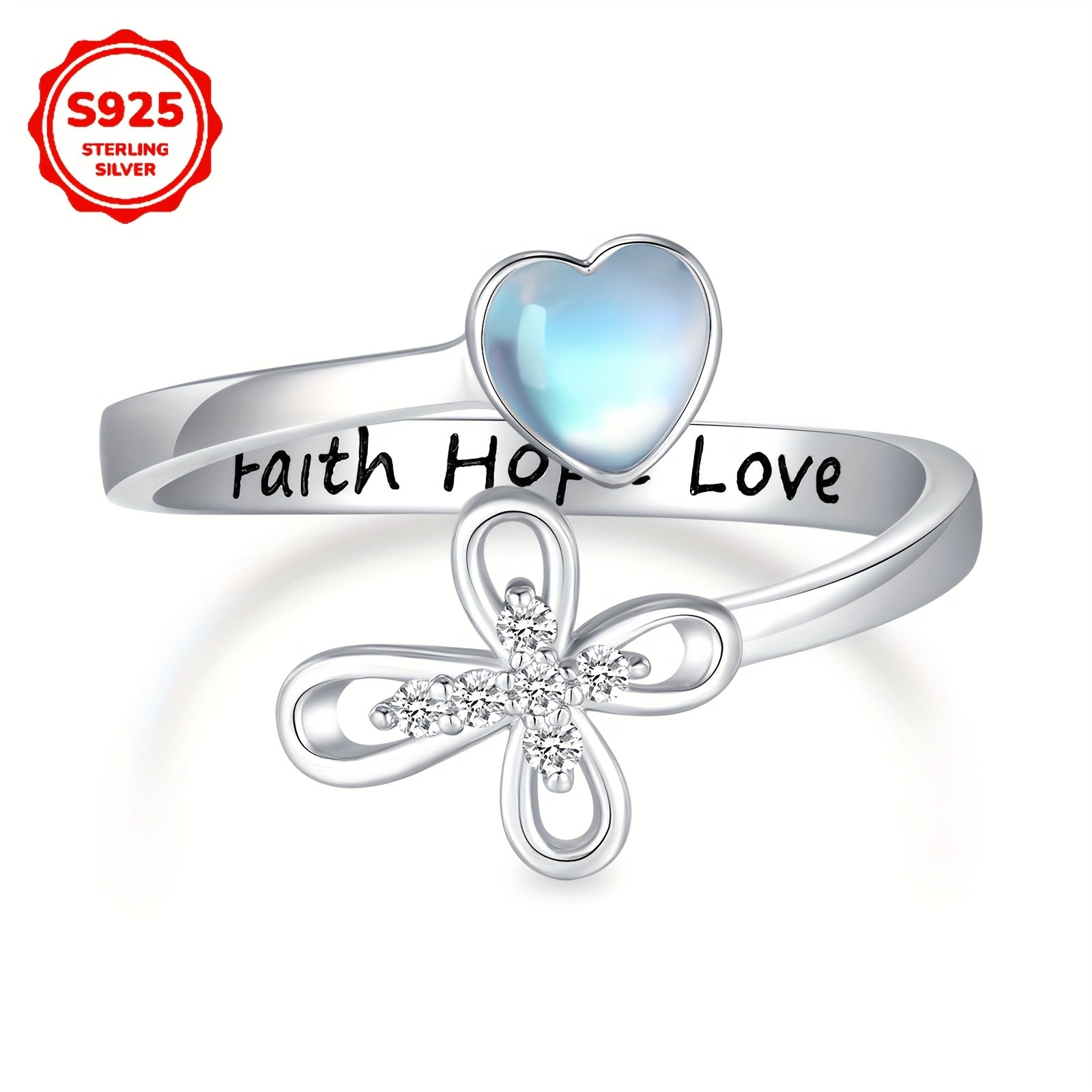 This beautiful moonstone ring is made of 925 sterling silver, featuring a cross design with a heart-shaped moonstone. Perfect as a holiday or Valentine's gift for women.