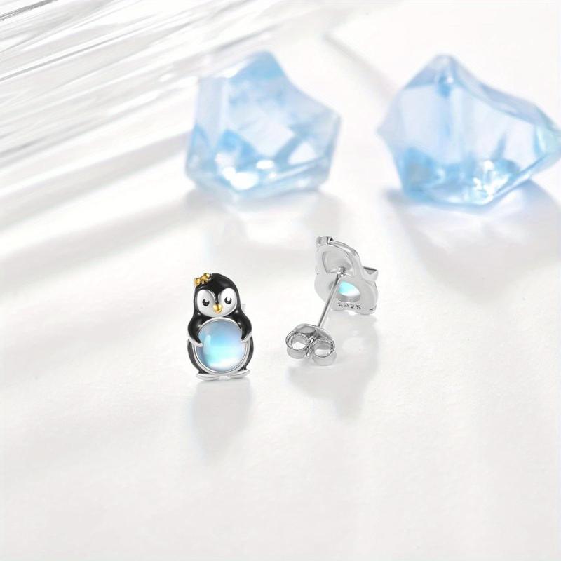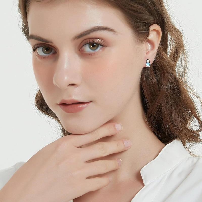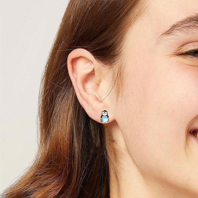 These elegant stud earrings feature synthetic moonstones set in 925 sterling silver. Perfect for women with sensitive ears, these hypoallergenic earrings add a touch of sophistication to any outfit.