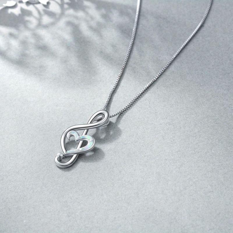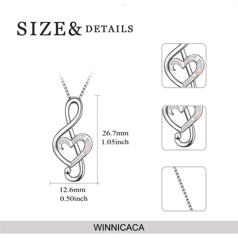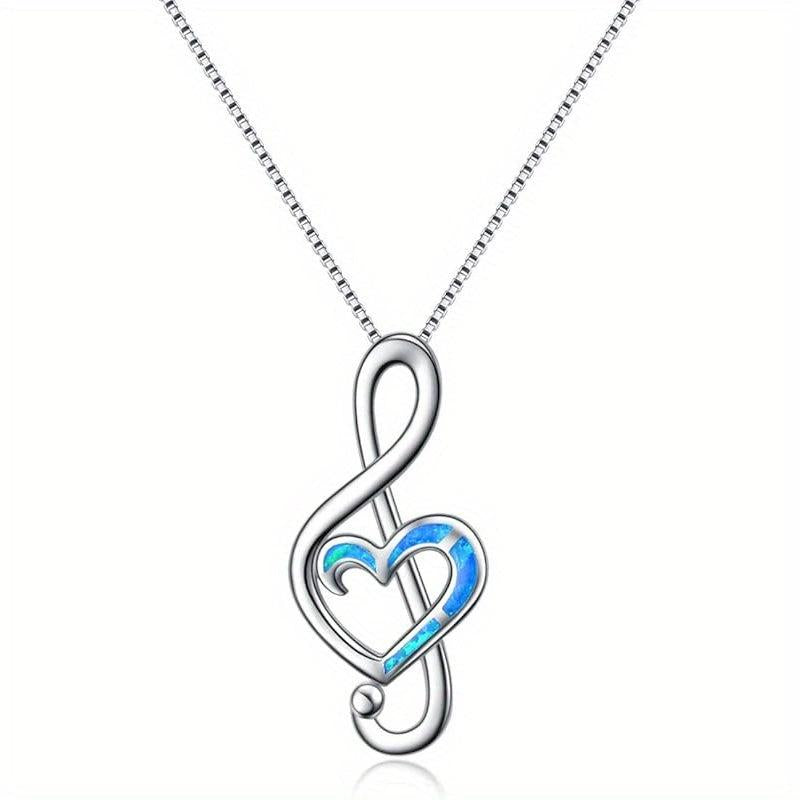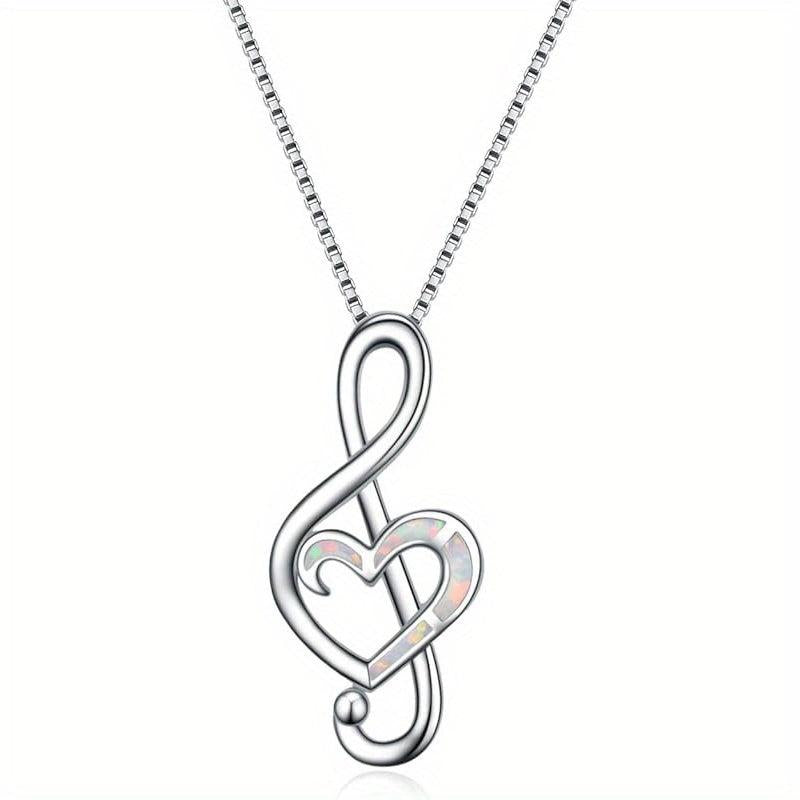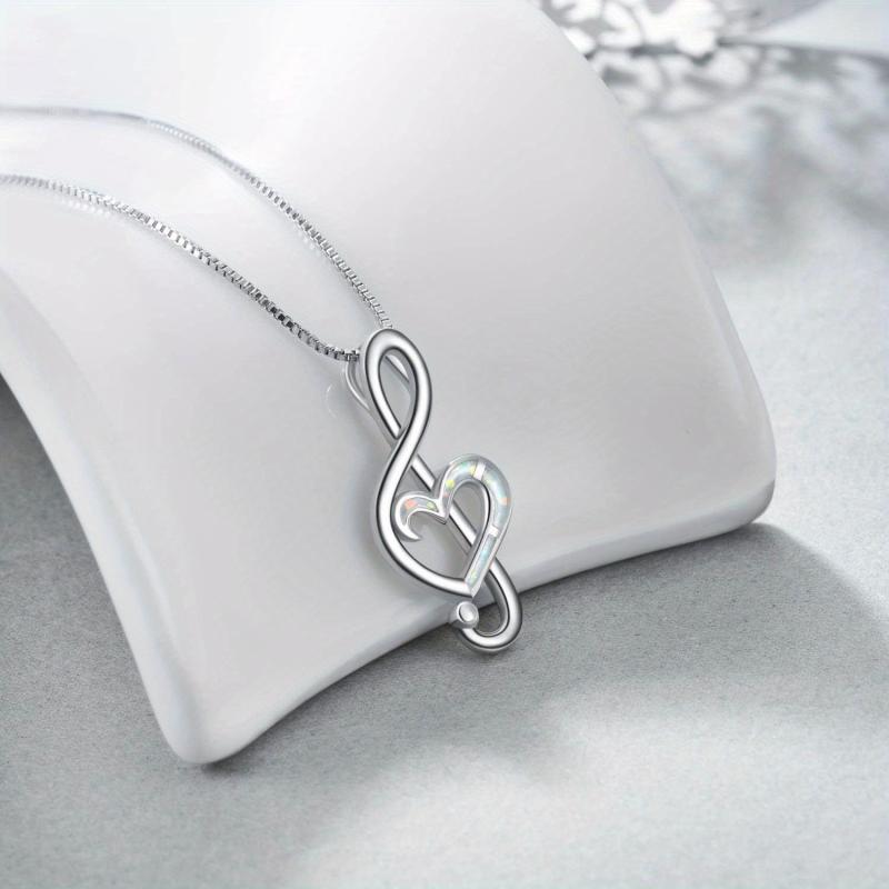 This elegant pendant necklace features a music note design crafted from 925 sterling silver and adorned with synthetic opal. Perfect for music lovers and a great gift option.