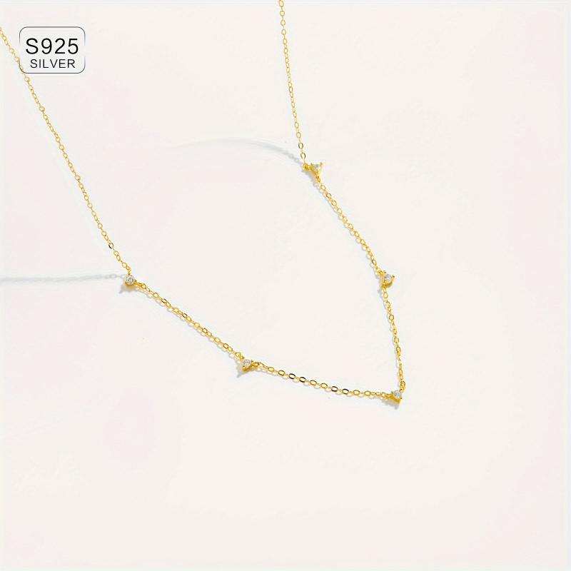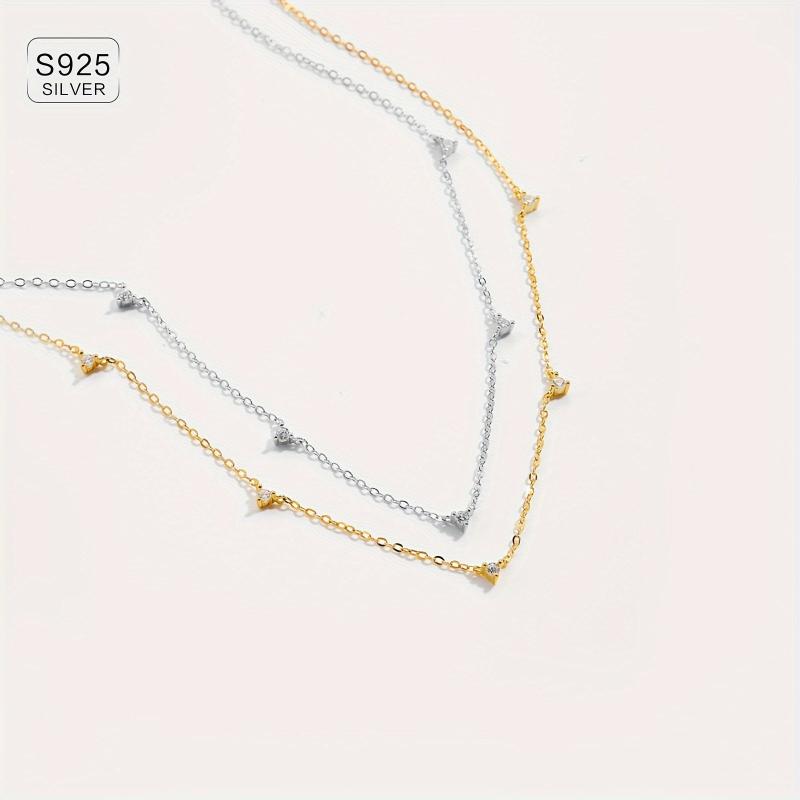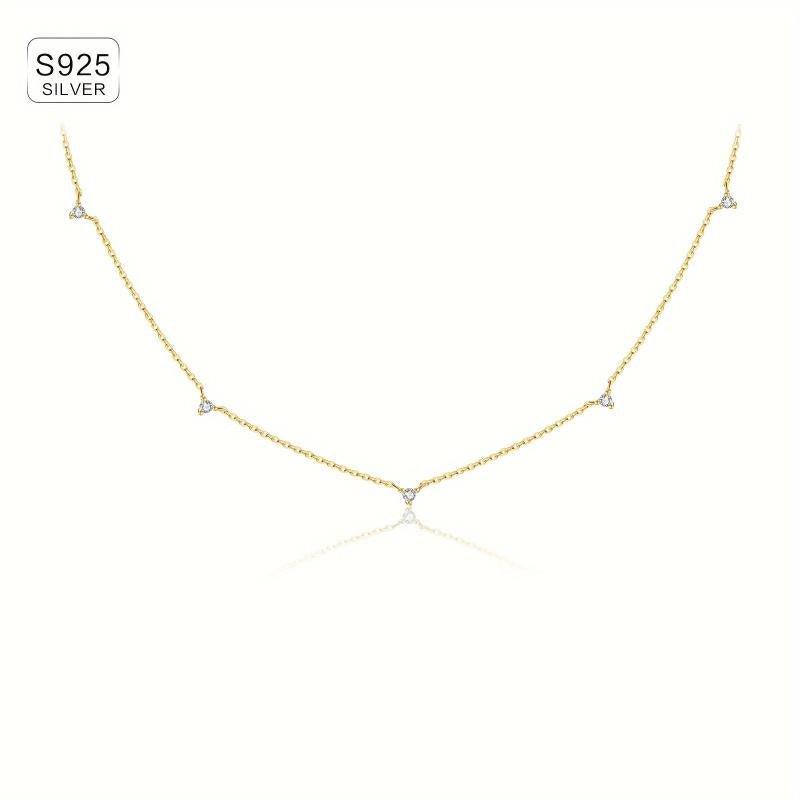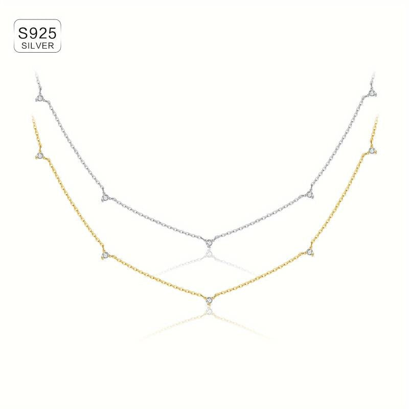 Elegant and stylish 925 silver necklace with zirconia, perfect for adding a touch of glamour to any outfit. The high clavicle chain design exudes a sense of sophistication and class.