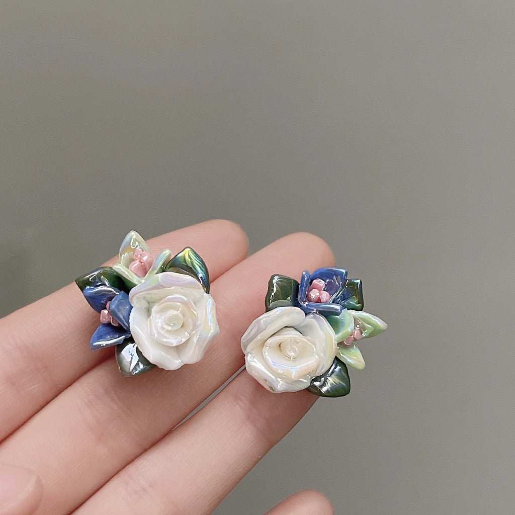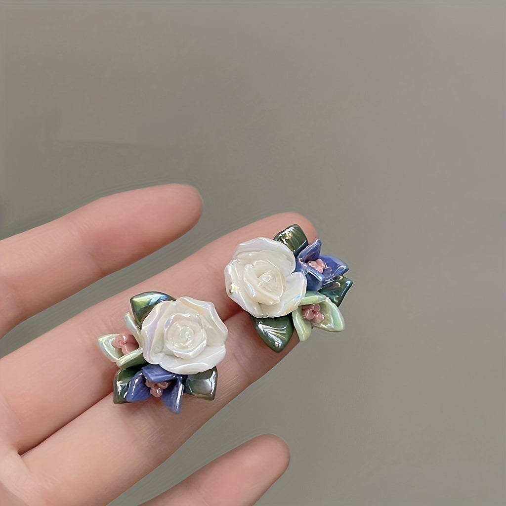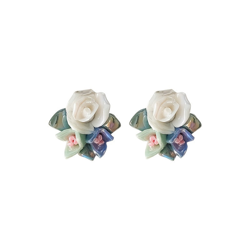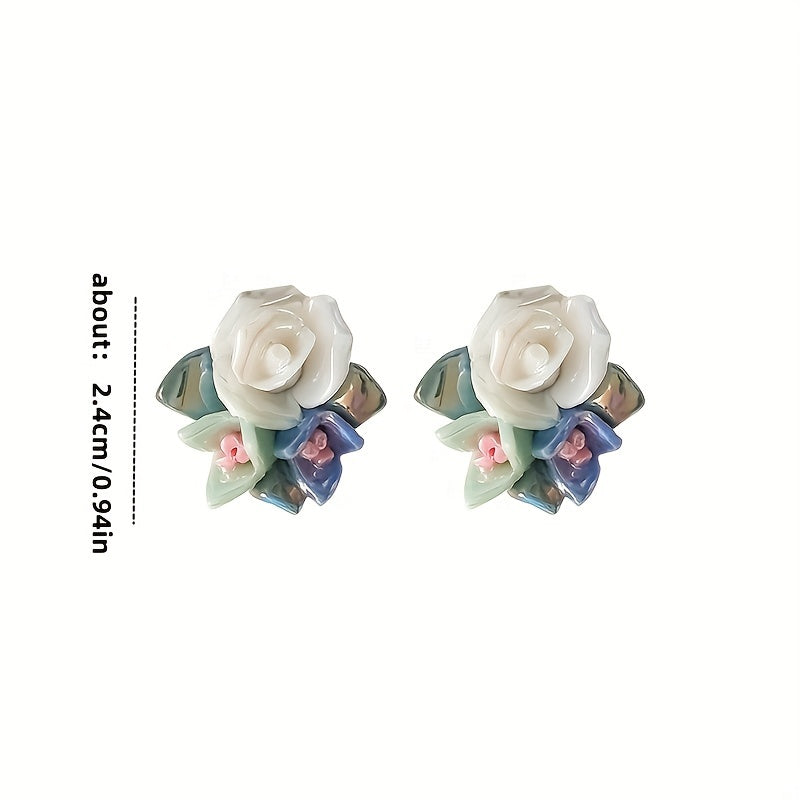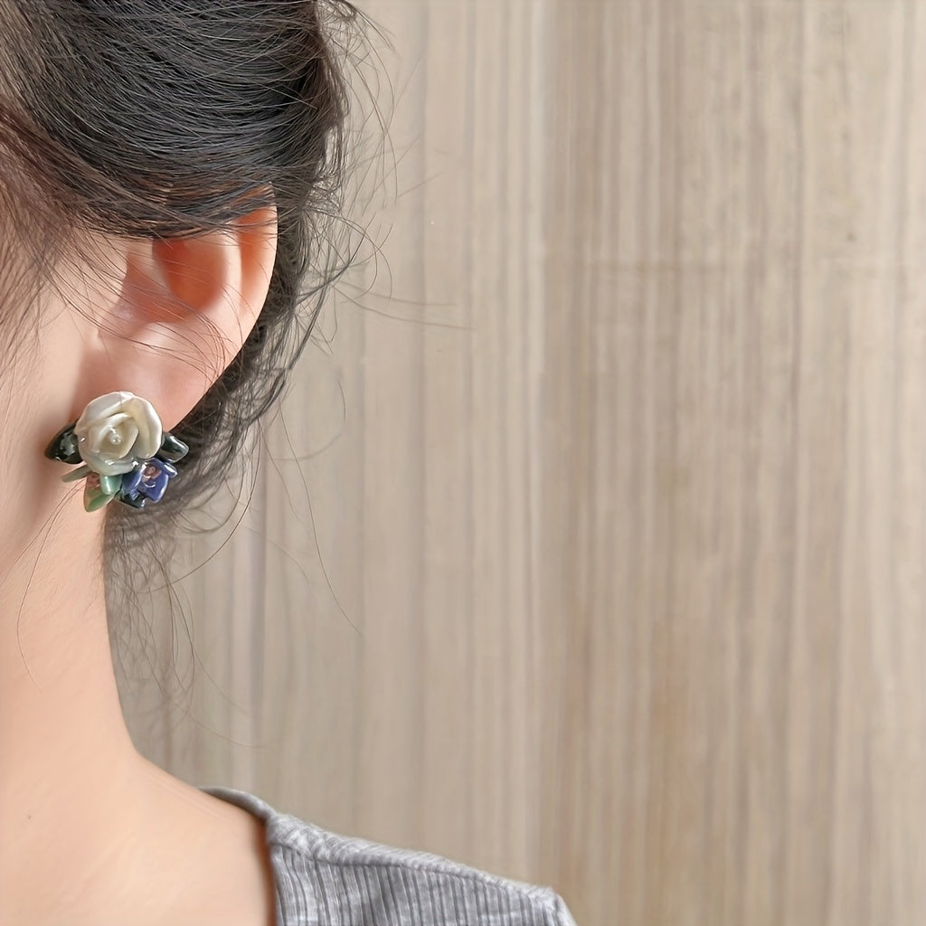 Beautiful ceramic flower stud earrings with 925 silver needle, perfect for women. A fine jewelry gift that adds elegance to any outfit.