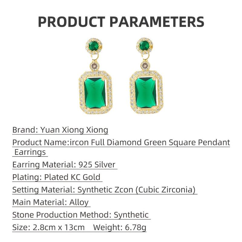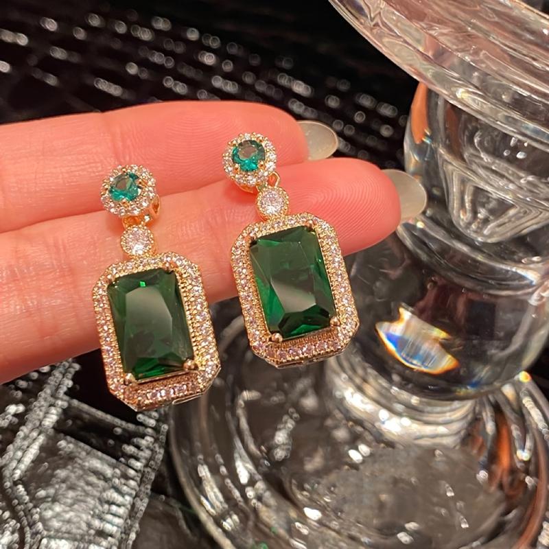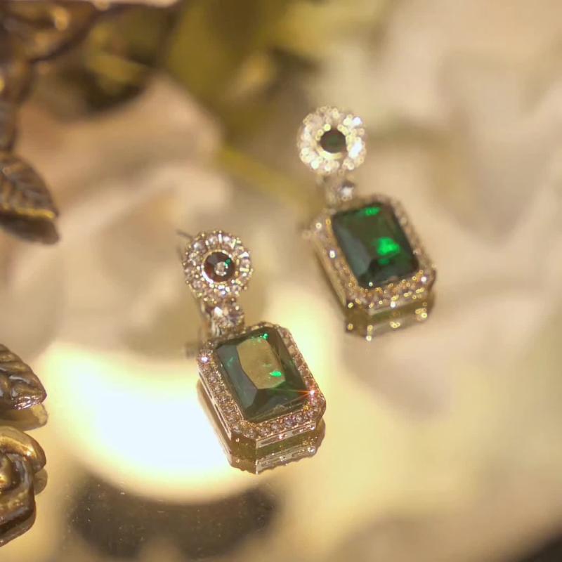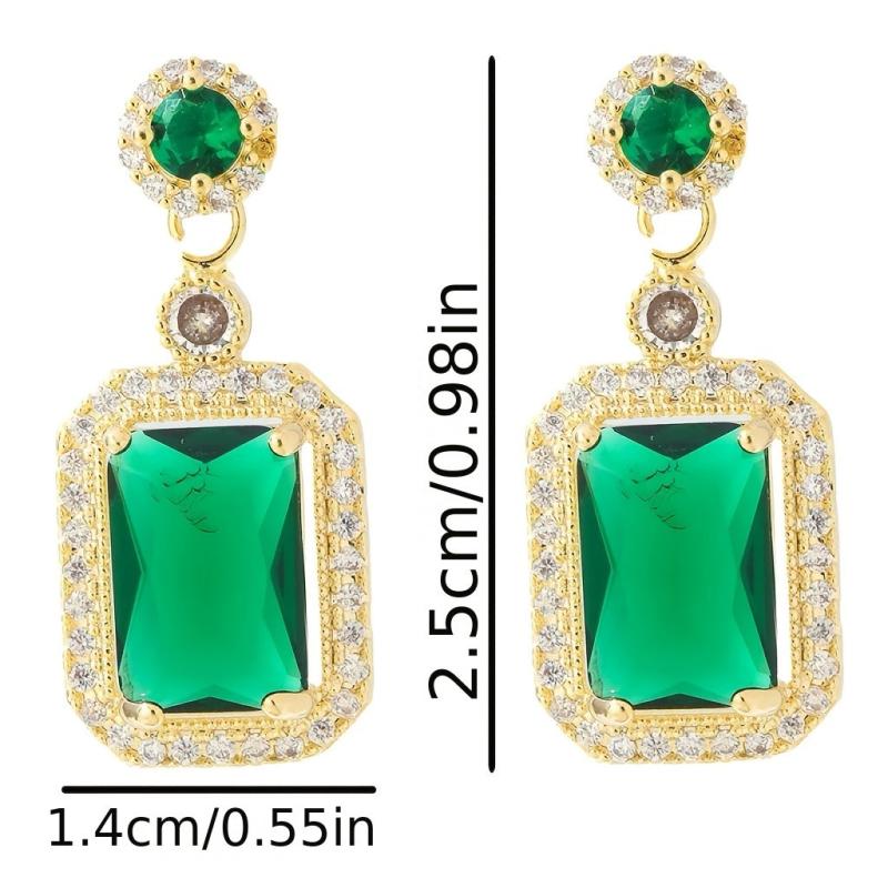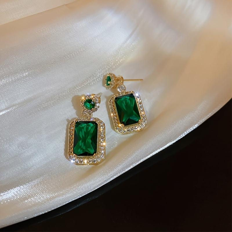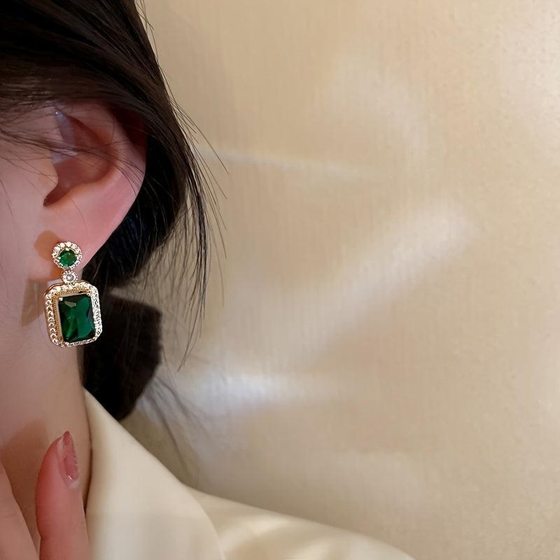 These elegant earrings feature a green square rhinestone pendant on 925 silver needles. Perfect for daily wear or gifting during the holiday season.