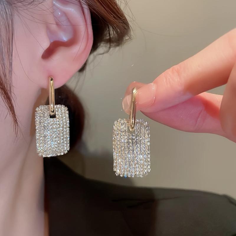 These dangle earrings feature micro pave rhinestones, made of zinc alloy, perfect for daily wear or gifting Valentine's jewelry.
