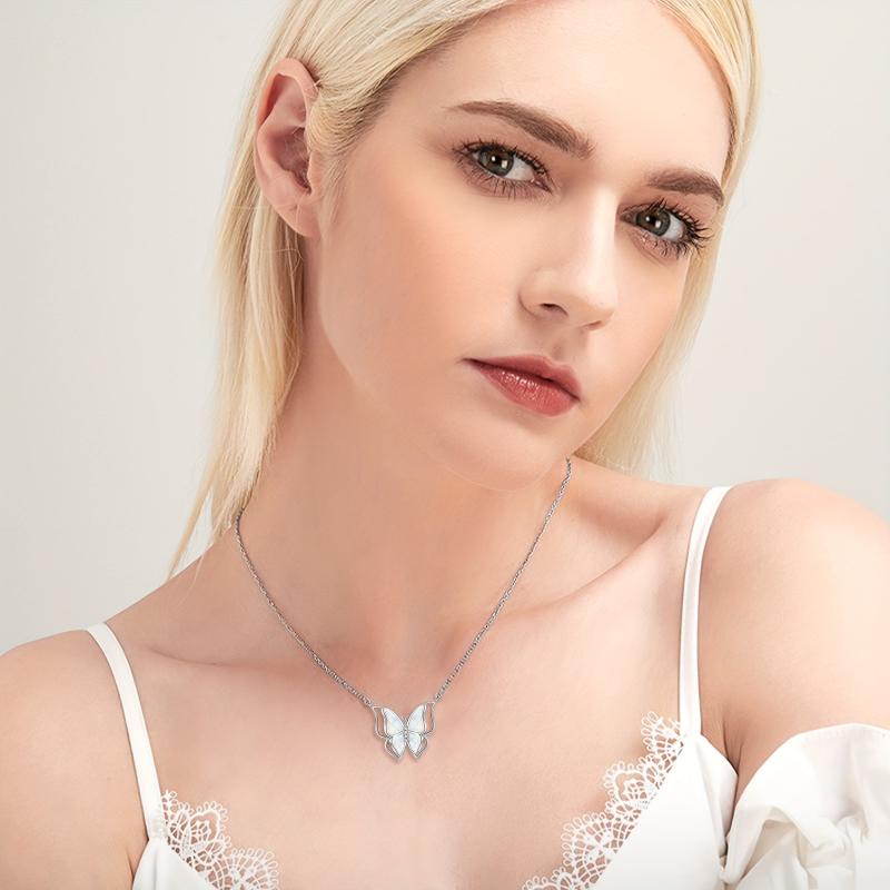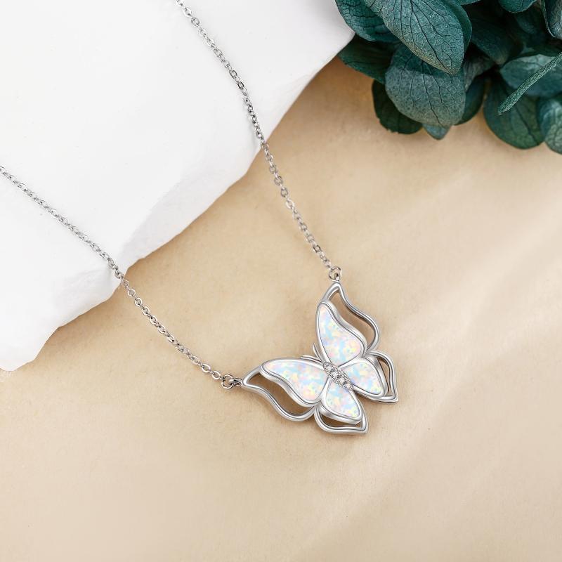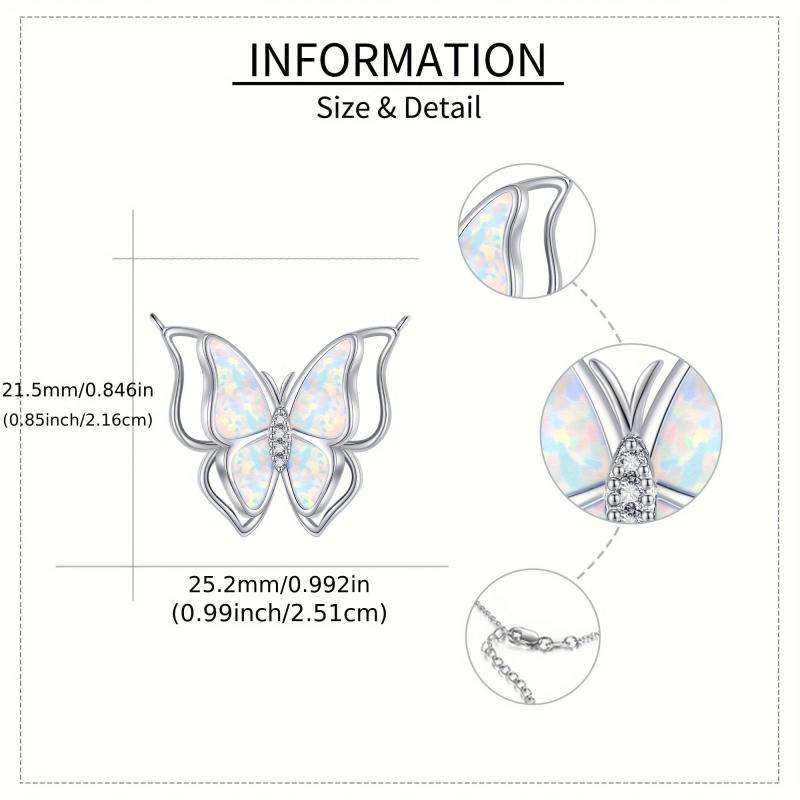 Adorn yourself with this charming 925 sterling silver butterfly necklace featuring an opal pendant. A delicate and elegant piece suitable for any occasion.