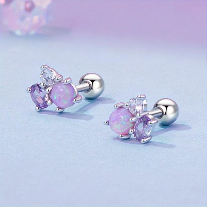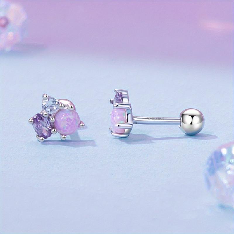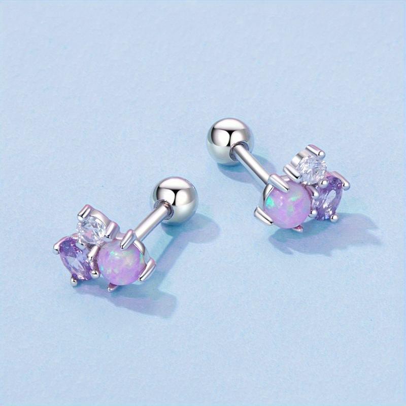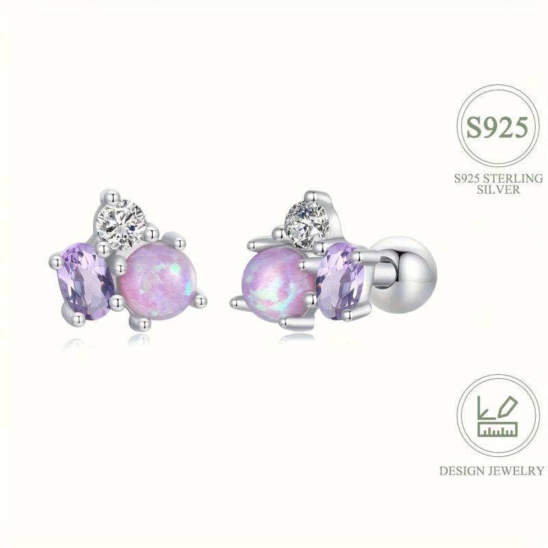 Elevate your style with these stunning opal earrings made of 925 sterling silver. These earrings are perfect for daily wear, parties, and festivals. The platinum plating adds a touch of elegance, and the purple gemstones make a bold statement. These earrings are a great addition to your jewelry collection and can be worn with a variety of outfits.