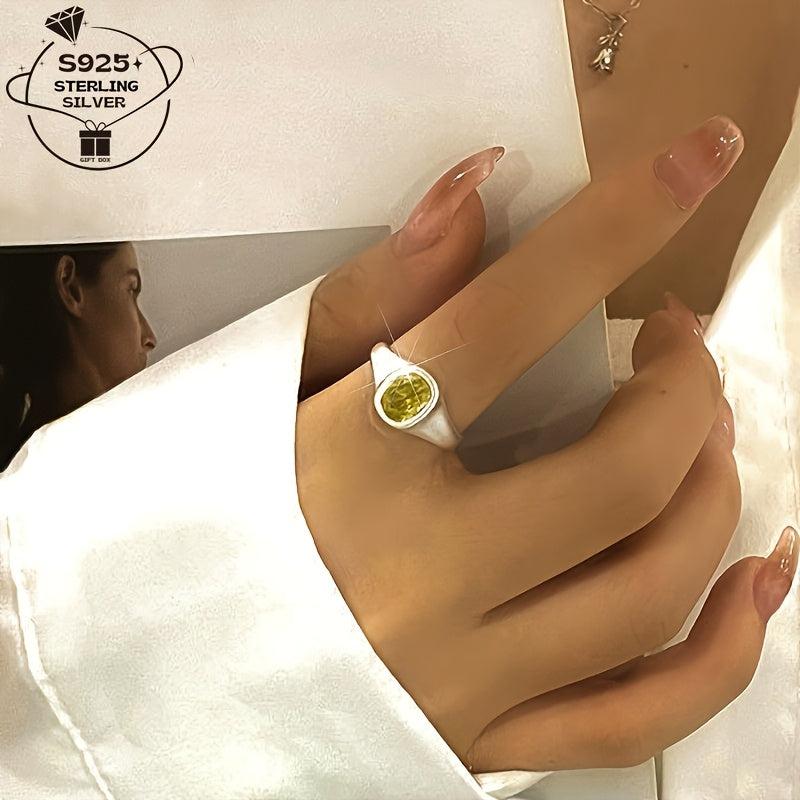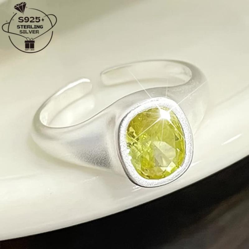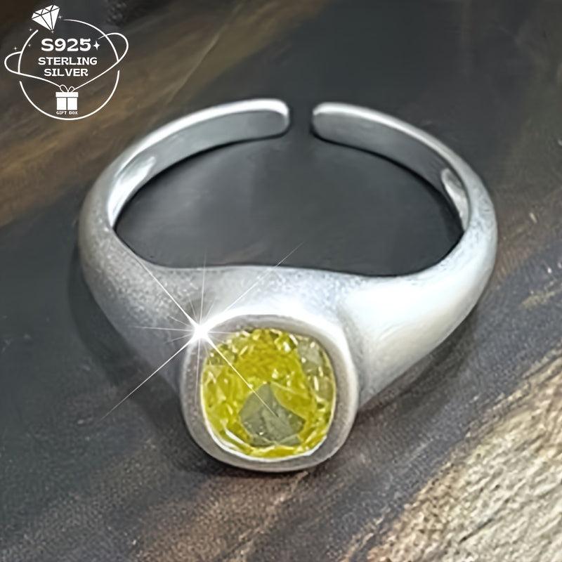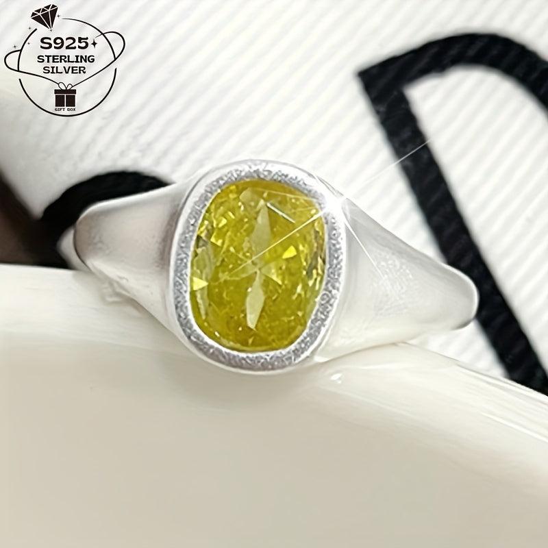 This stunning 925 silver ring features frosted square design with sparkling yellow synthetic zirconia inlay. Perfect accessory for any occasion.