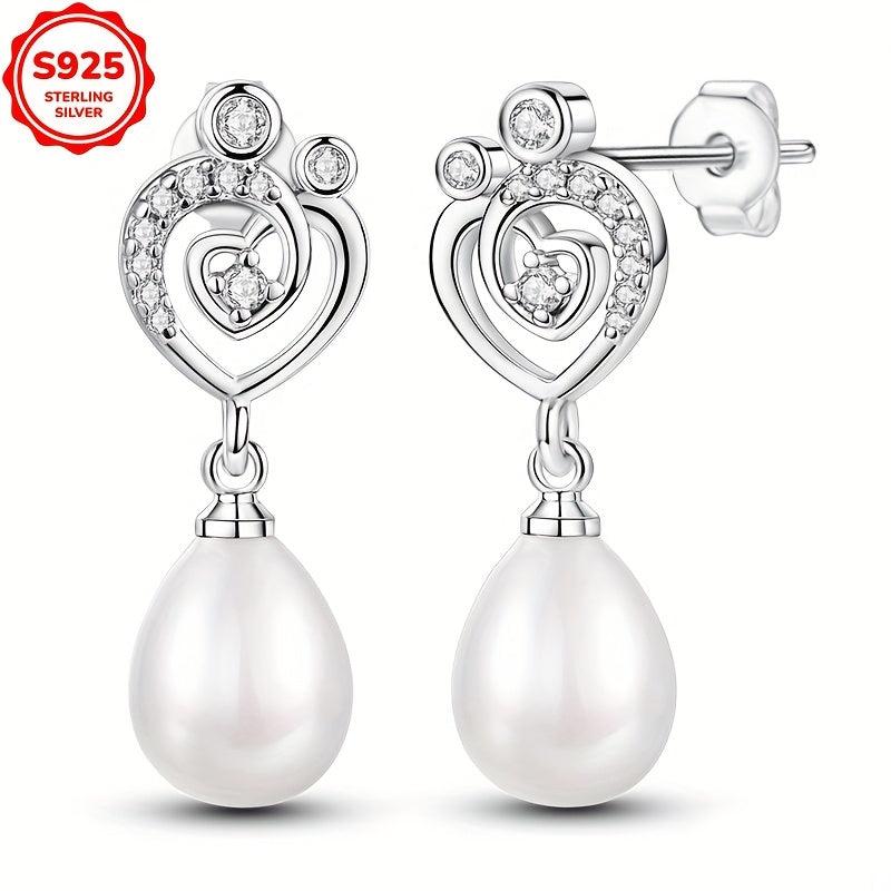 Delicate silver earrings with a parent's love stone drop design, perfect for birthdays, weddings, and special occasions.