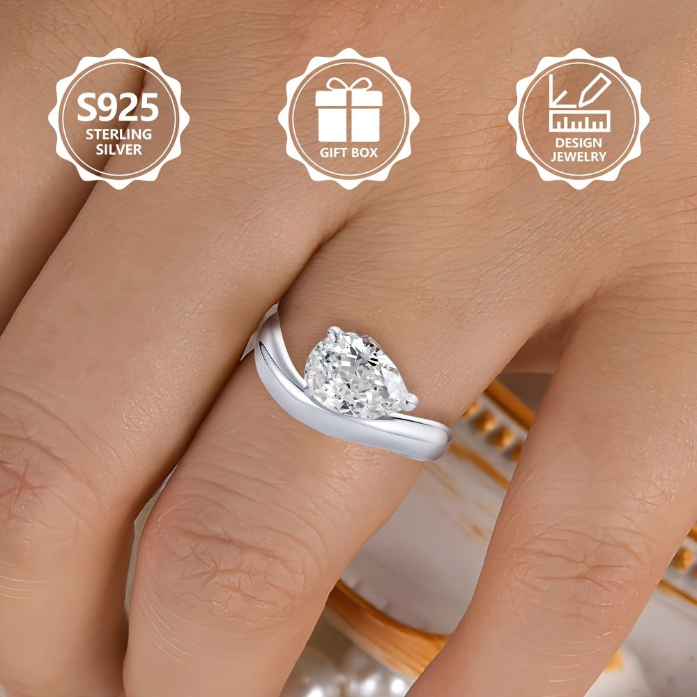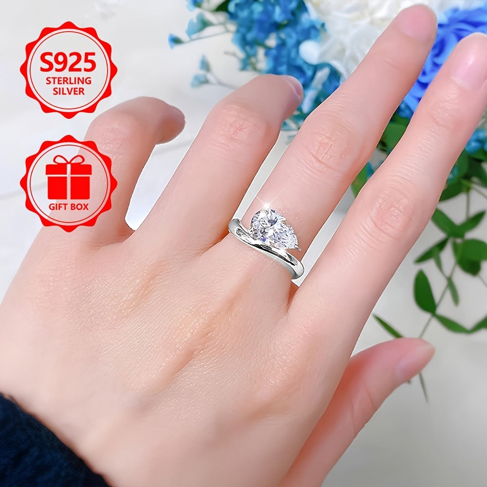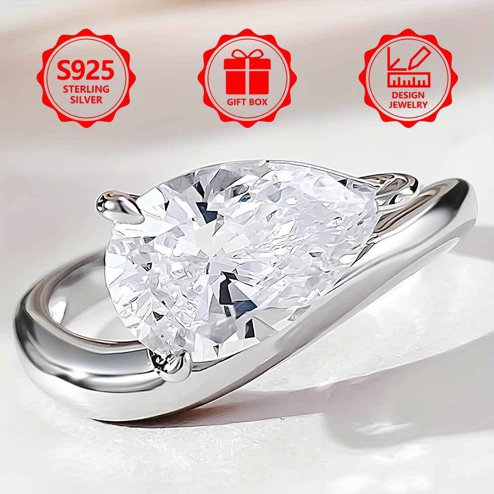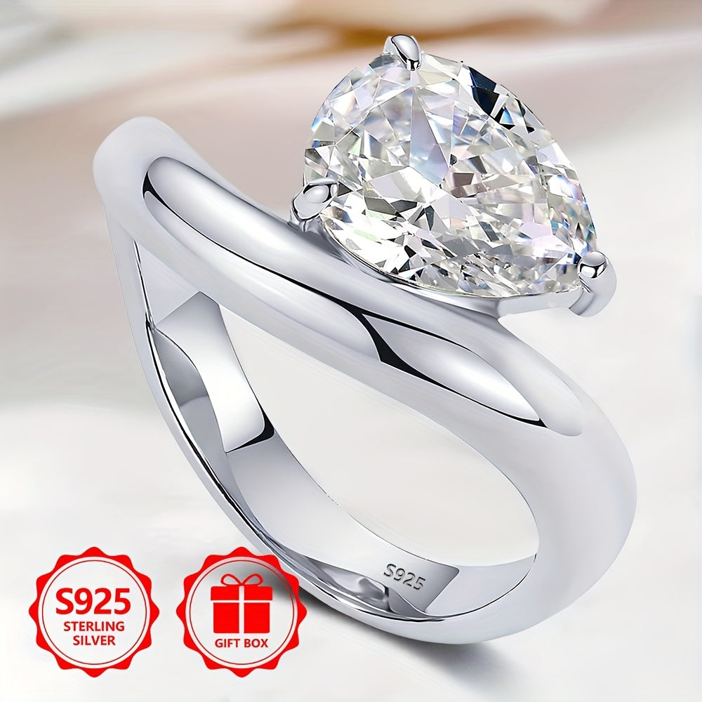 Elegant and timeless 925 silver ring featuring a pear-shaped cubic zirconia stone in a 3-prong setting. Perfect for daily wear, weddings, or as a Valentine's gift.