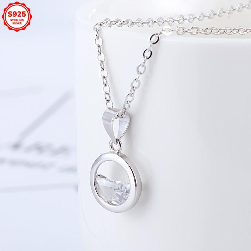 This elegant pendant necklace is made of 925 sterling silver with a teardrop cubic zirconia and 18K golden plating. It comes in a box to prevent oxidation, making it a perfect gift for women.