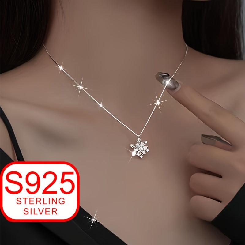 Elevate your summer style with this stunning 925 silver necklace featuring a snowflake zirconia pendant. Hypoallergenic and perfect for beach outings.