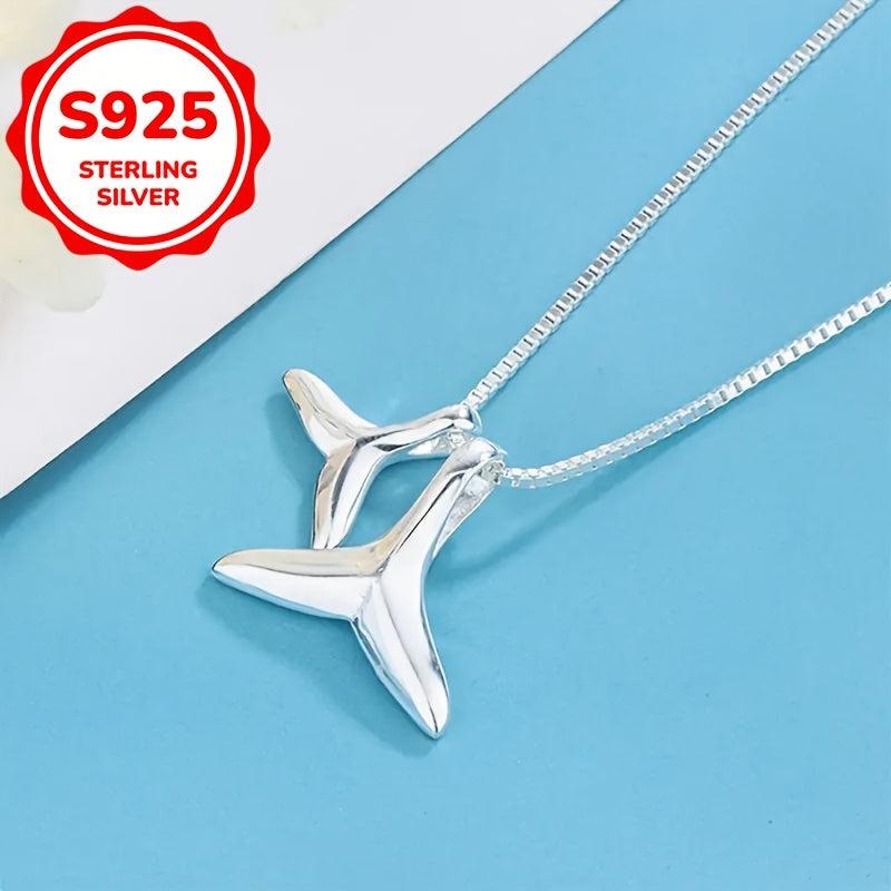 This smooth double fishtail necklace features a dolphin tail pendant, perfect for couples or besties. Made of high-quality 925 silver, this clavicle necklace is a stylish and meaningful accessory.