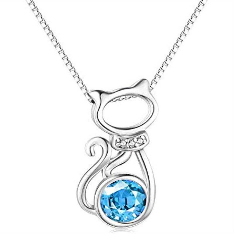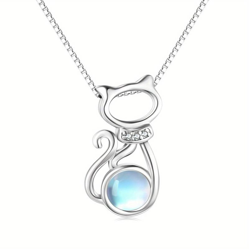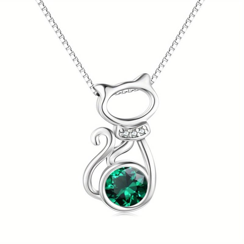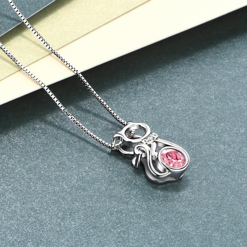 This charming cat necklace is crafted from 925 sterling silver with a delightful pink synthetic crystal accent. The perfect piece of cat jewelry for women.