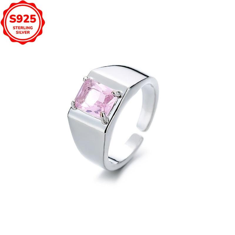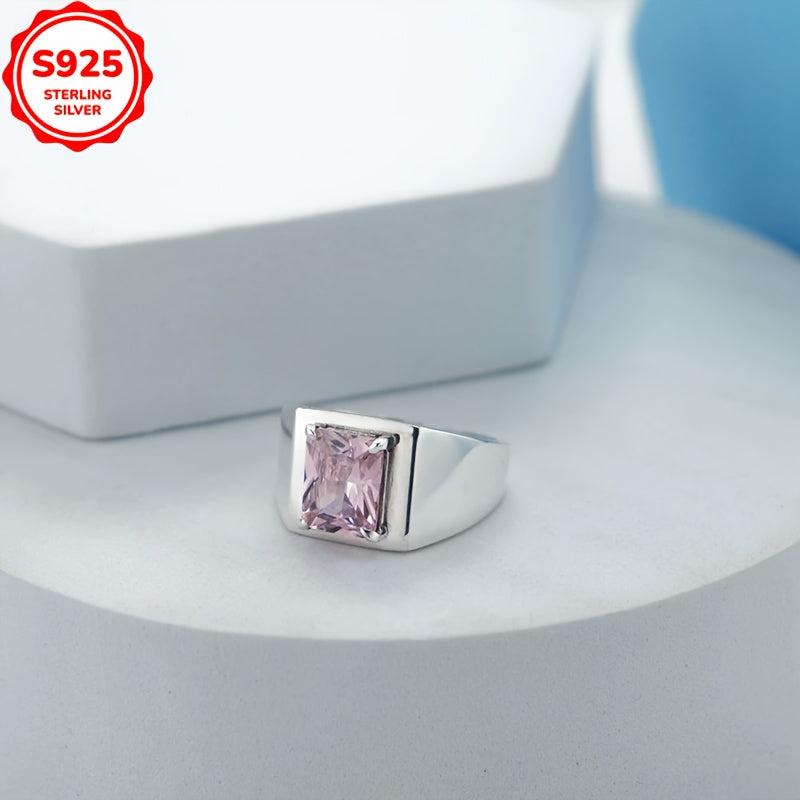 Stunning 925 sterling silver ring featuring a pink gemstone set in a wide band with sparkling cubic zirconia accents. Perfect for Valentine's Day or everyday wear.