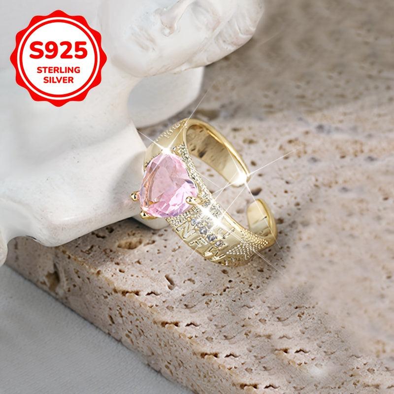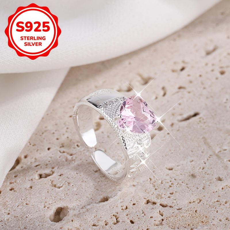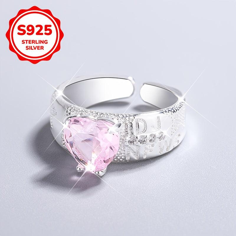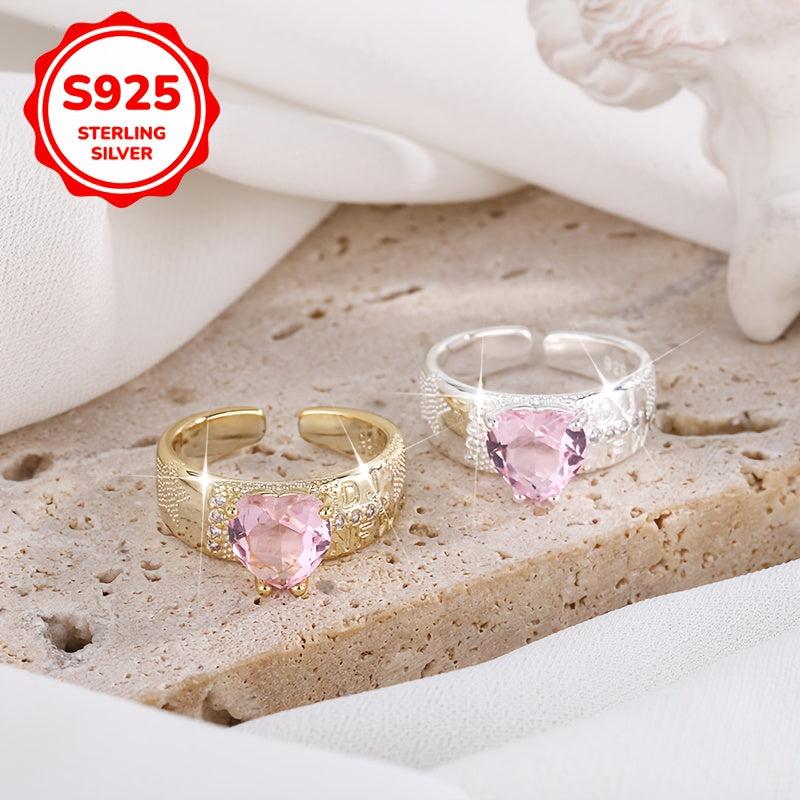 This 925 sterling silver ring set features pink heart designs, making it perfect for couples, friends, or special occasions. The rings are elegant and stylish, suitable for everyday wear.