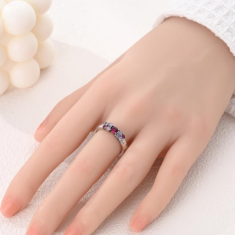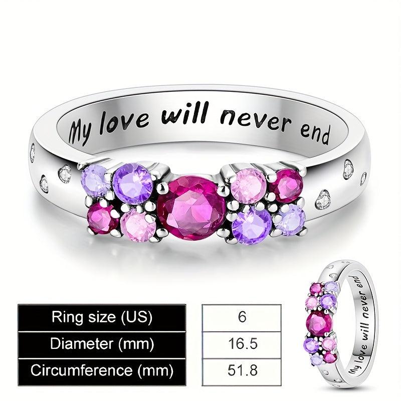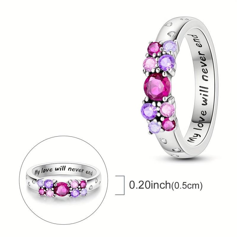 This stunning 925 silver ring features a beautiful design with pink and purple accents, symbolizing everlasting love. Perfect for weddings or as a romantic gift for Valentine's Day.