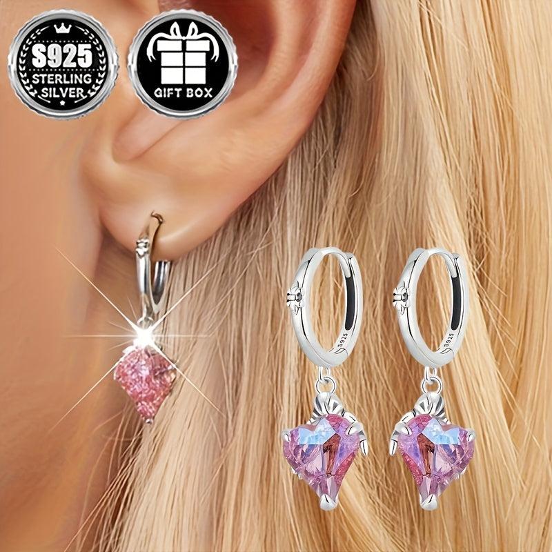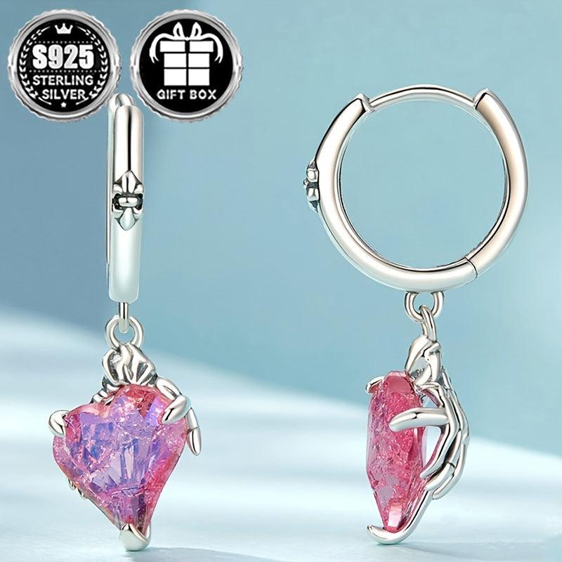 These hypoallergenic Halloween party earrings feature a pink skull, hand, and heart design. Made of pure silver with a total weight of 3.3g. Perfect for women to wear during the holidays.