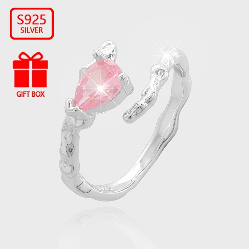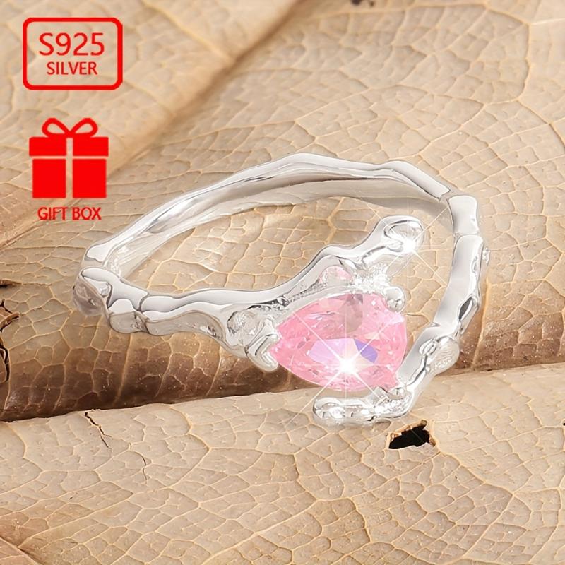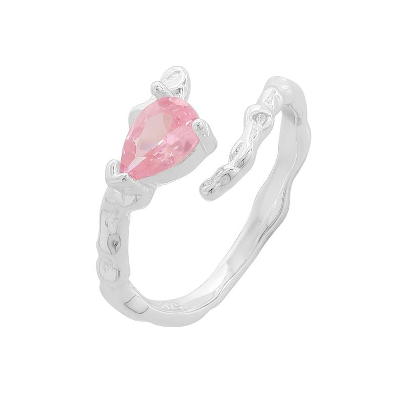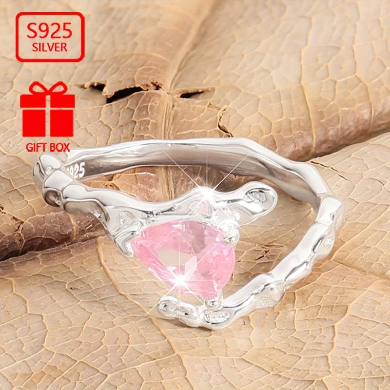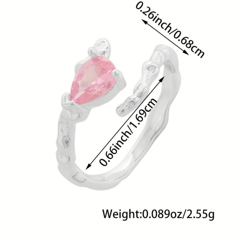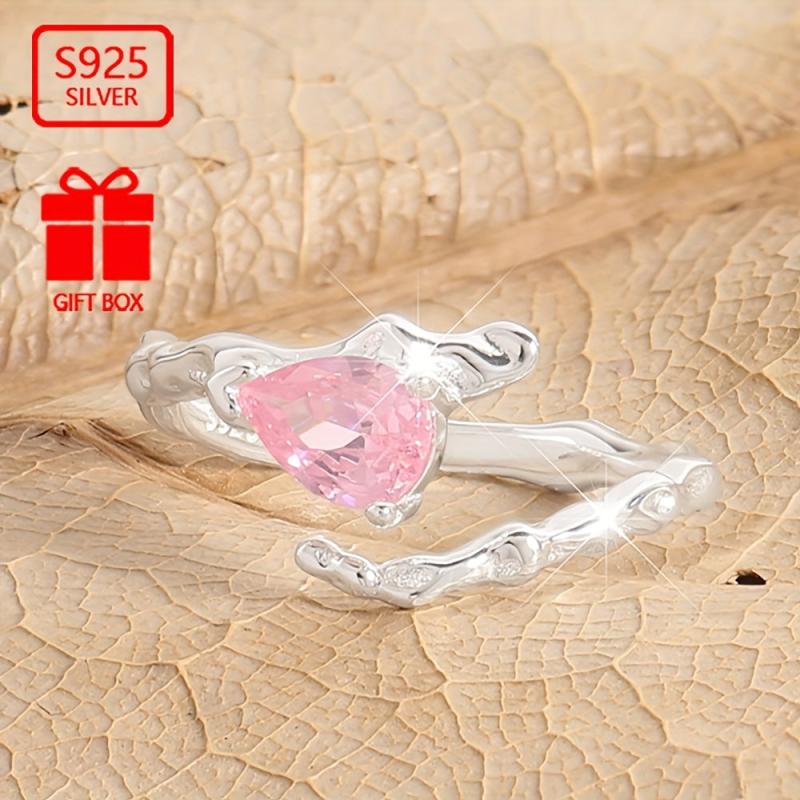 Elegant ring crafted from 925 sterling silver with pink synthetic zirconia. Adjustable band for comfortable wear. Perfect for daily use or as a thoughtful gift.
