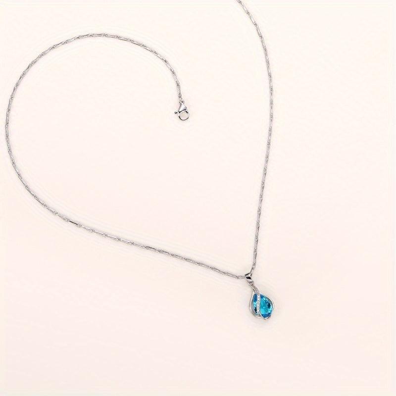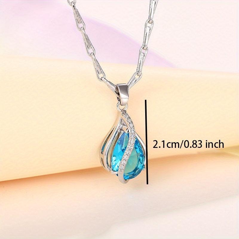 Elegant and stunning pendant necklace featuring a teardrop cut aquamarine gemstone. Perfect for weddings, anniversaries, and proms.