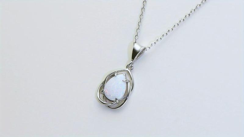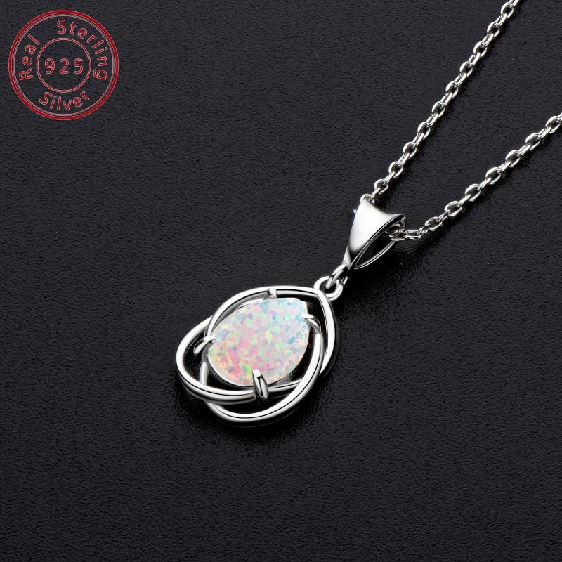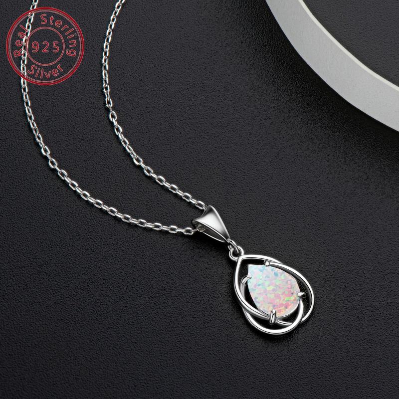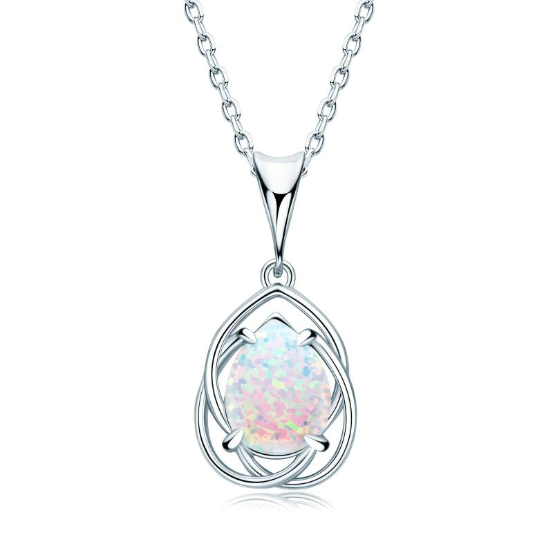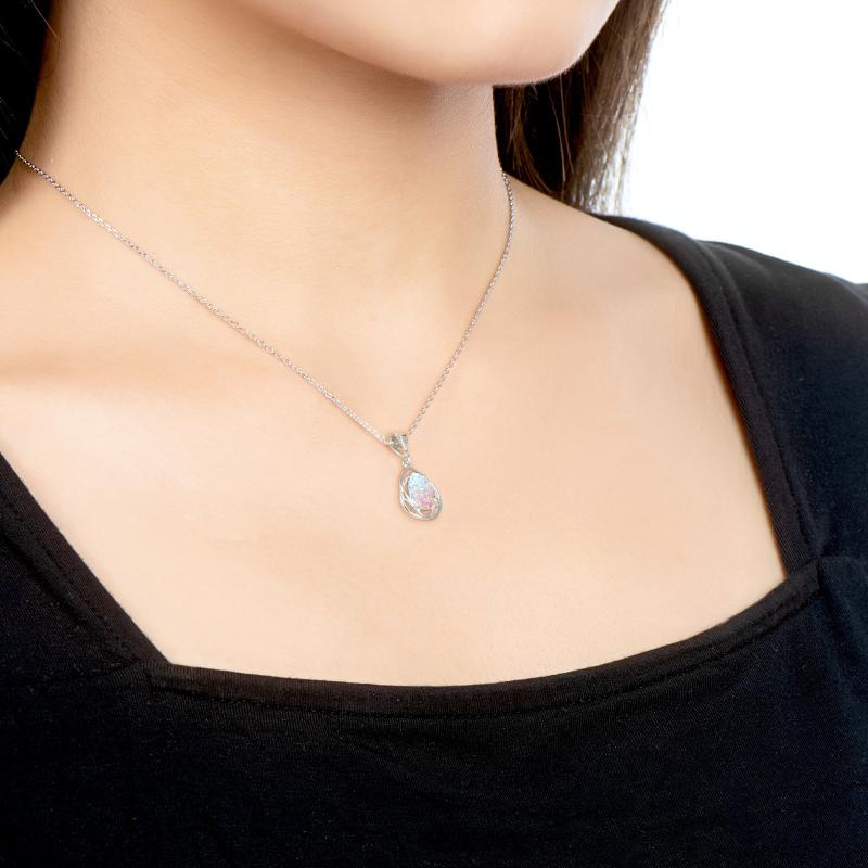 Elegant necklace featuring a mosaic synthetic opal pendant on a 40" o-shaped chain. Perfect for daily wear or as a gift.