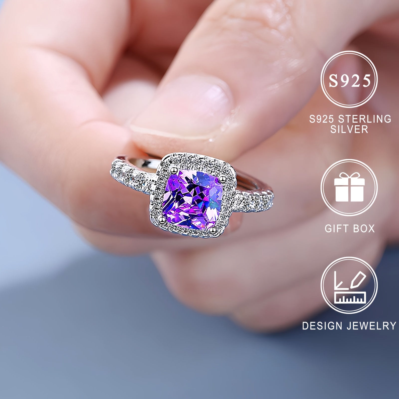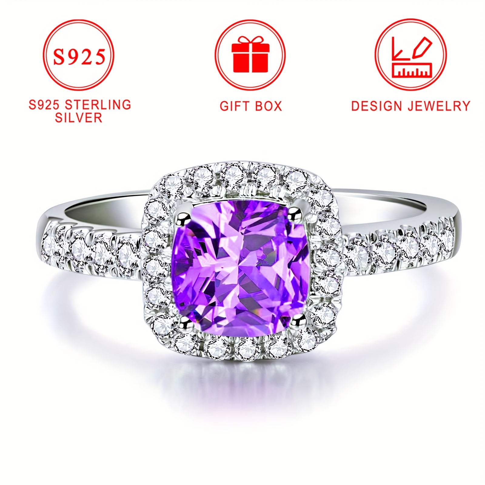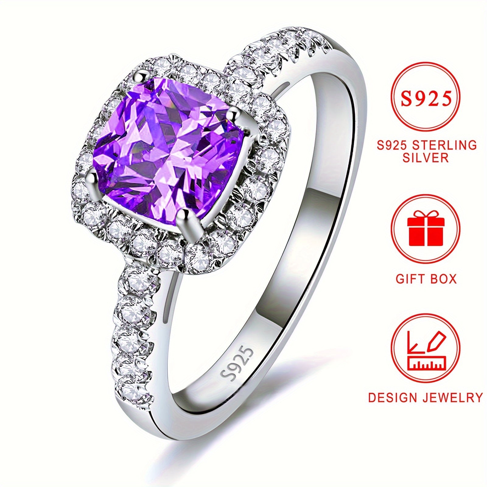 Beautiful engagement ring crafted from 925 sterling silver featuring a sparkling purple cubic zirconia stone. Ideal for weddings, anniversaries, and special occasions.