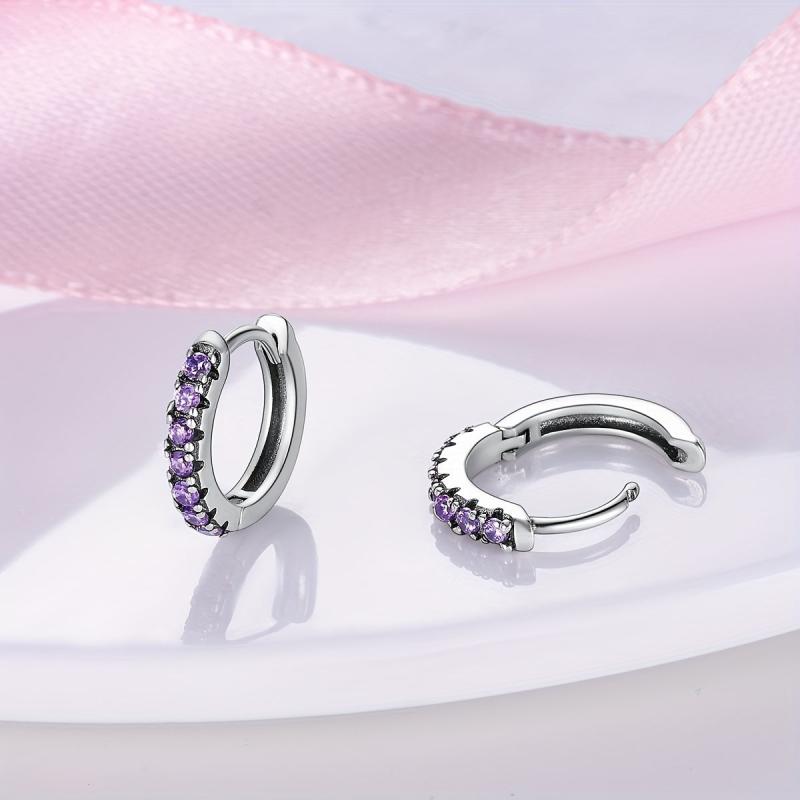 This pair of unique earrings are made of 925 silver and feature low allergy purple zirconia inlays. They make a perfect gift for women and weigh 2 grams.