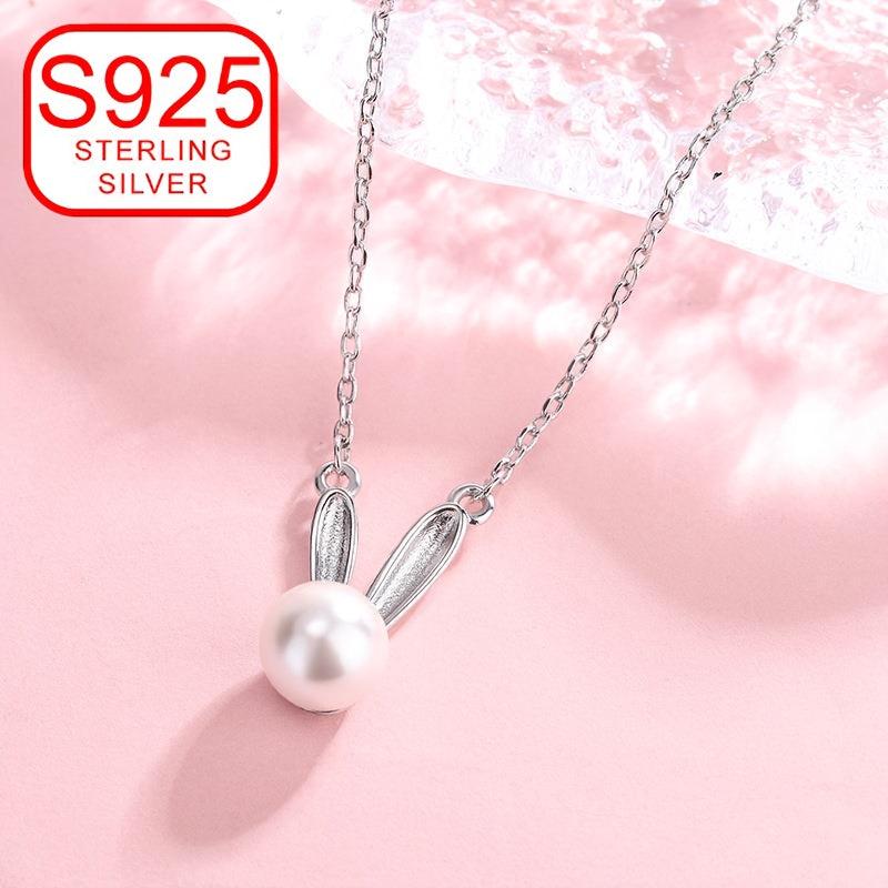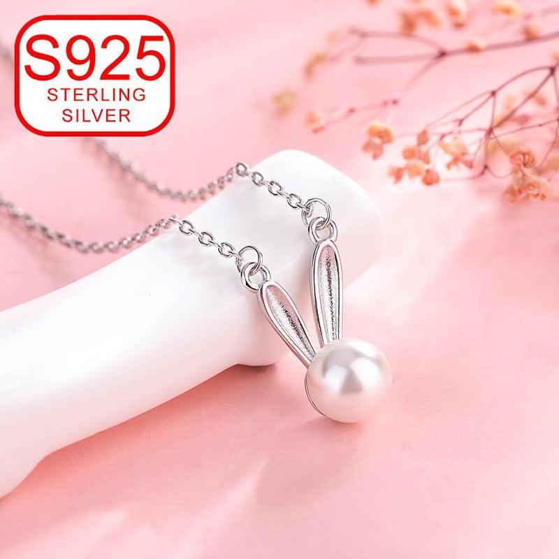 This hypoallergenic necklace features a small rabbit charm and a freshwater pearl, making it a stylish and versatile accessory. Perfect as a gift!