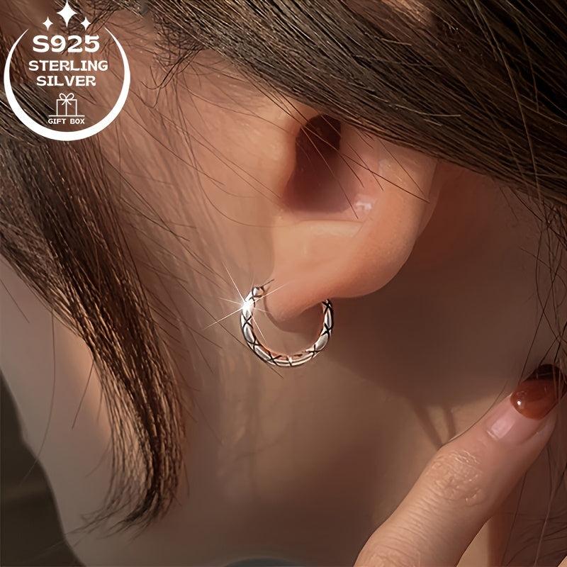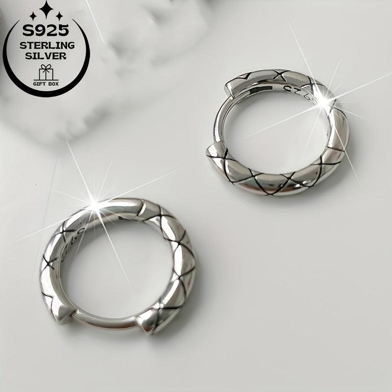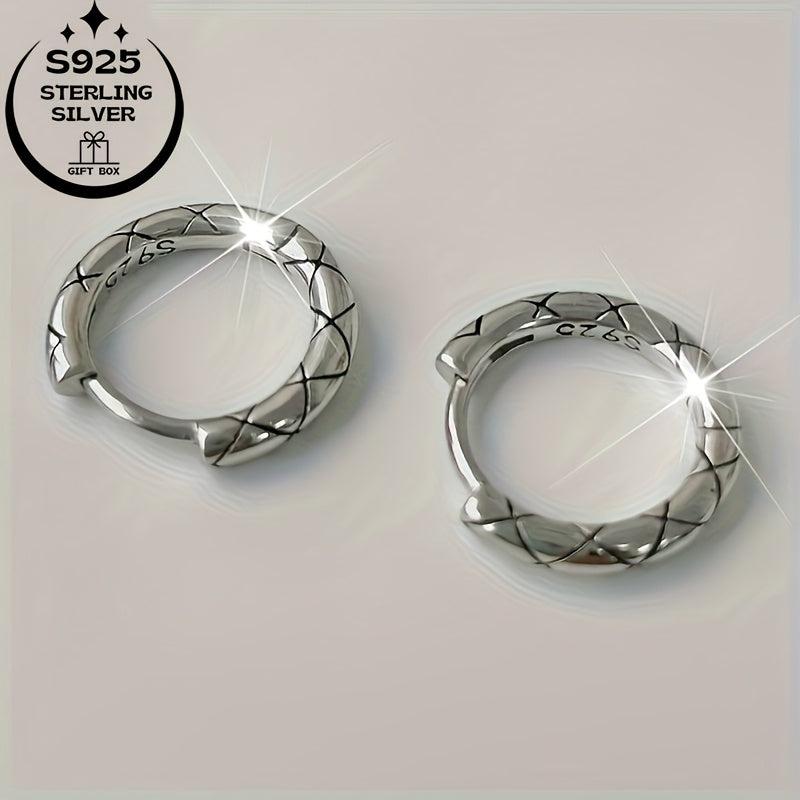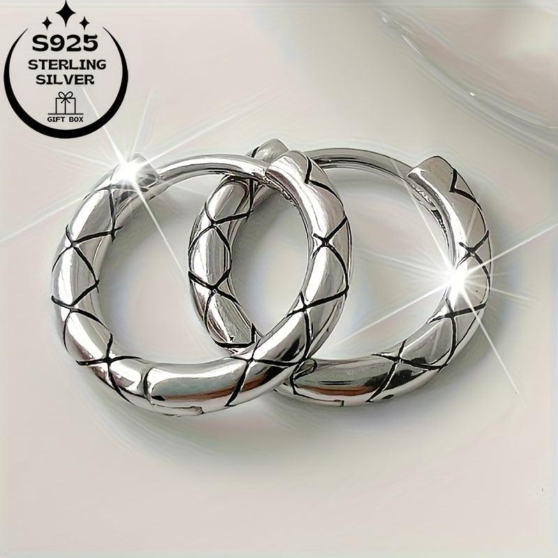 Stunning 925 silver earrings in retro geometric lattice design. Comes with classic cross line and packaging. Perfect gift idea for any occasion.