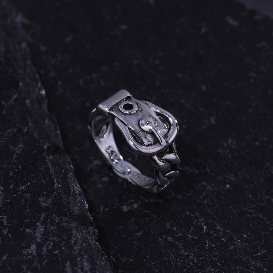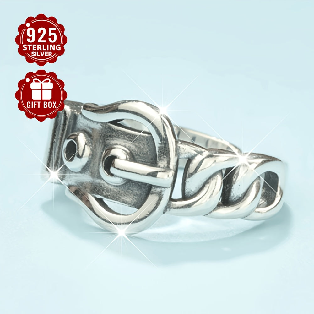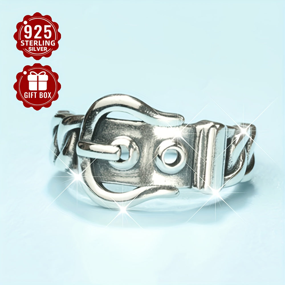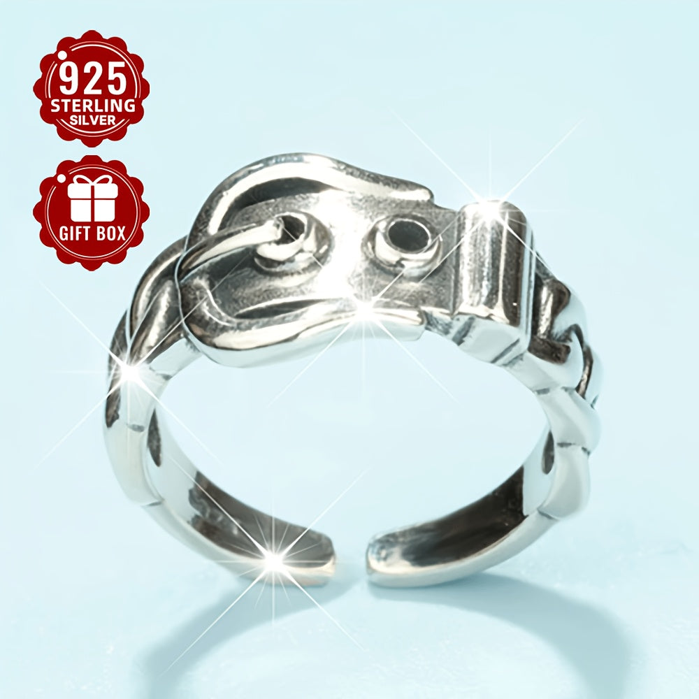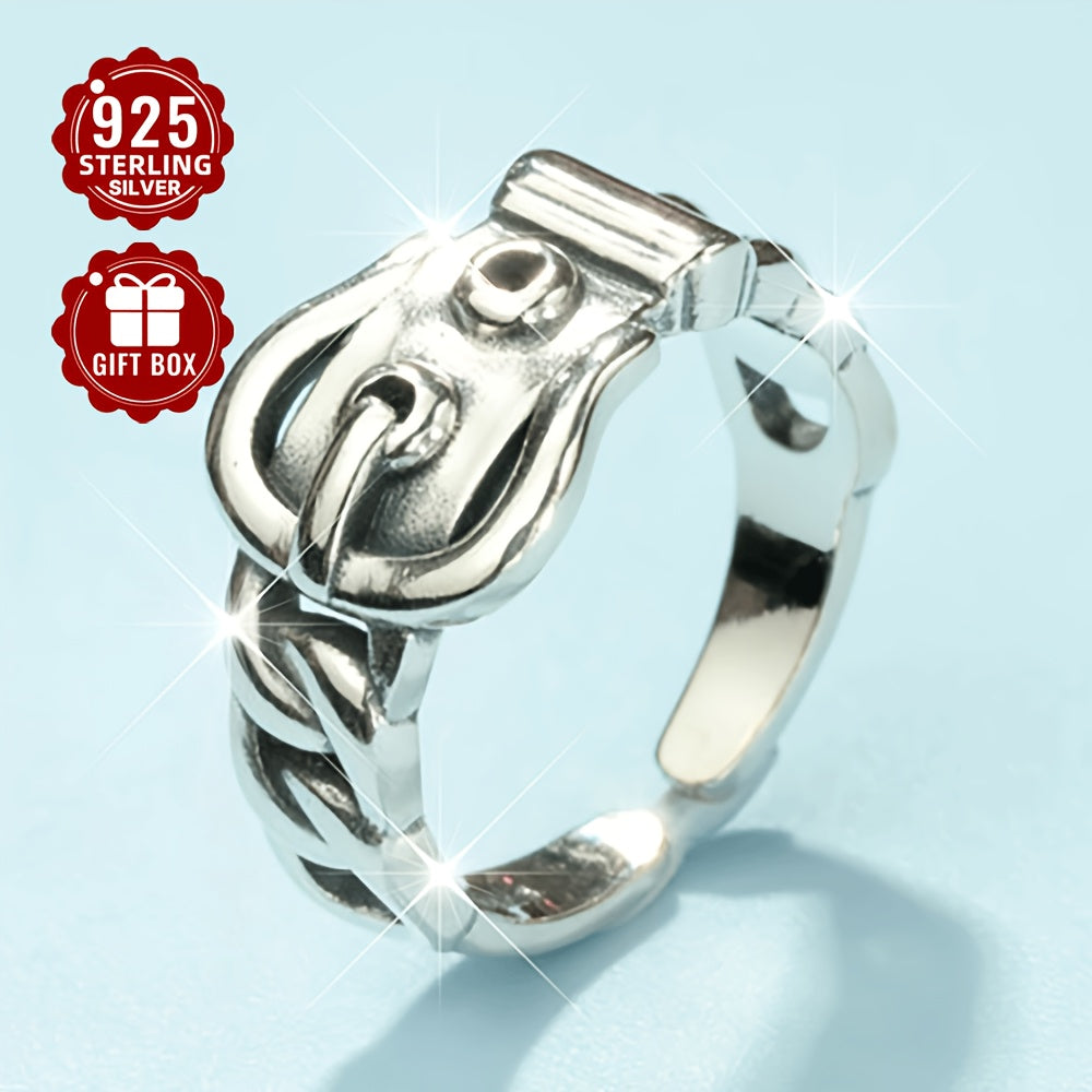 This open ring is made of pure 925 silver and features a retro hip hop belt strap design. It is adjustable and suitable for both men and women.