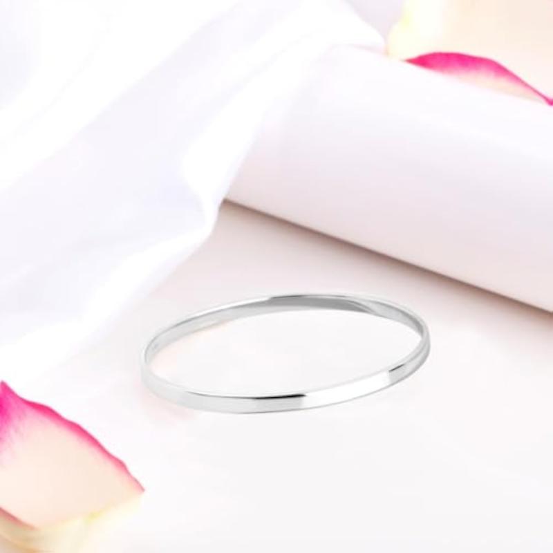 Add a touch of sleek sophistication to your look with this plain bangle. Made from 925 sterling silver, this rhodium-plated bangle is a versatile accessory that can be worn alone or stacked with other bracelets.