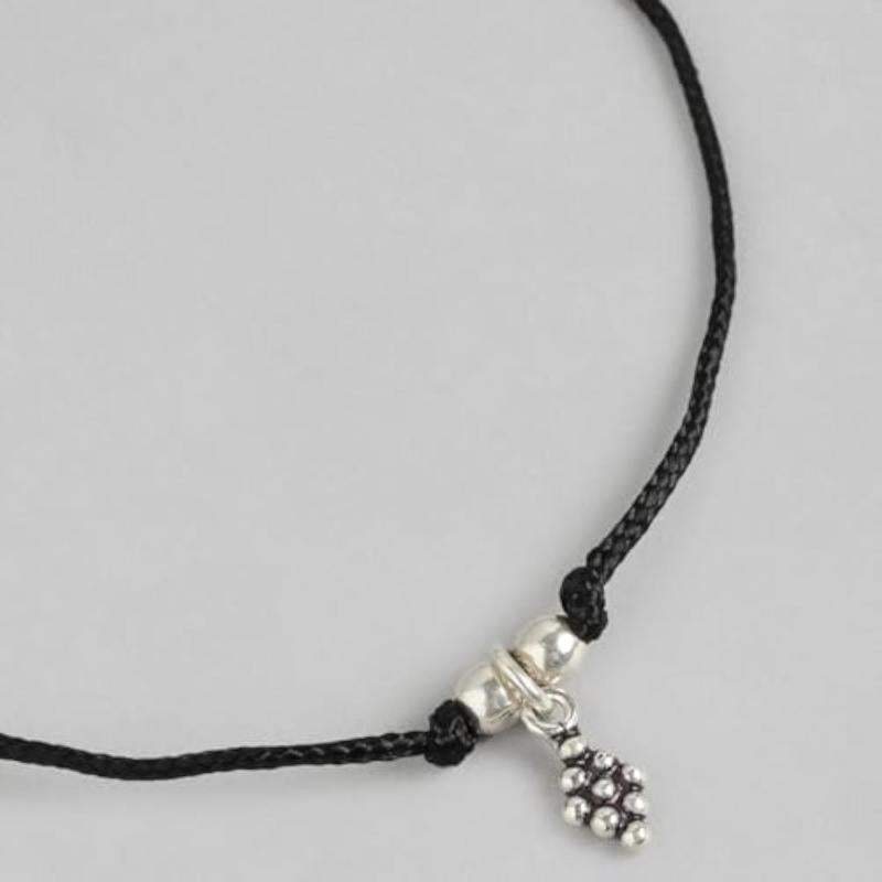 925 Silver Rhodium Plated Thread Anklet with Hallmark