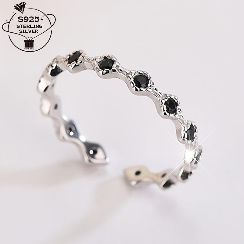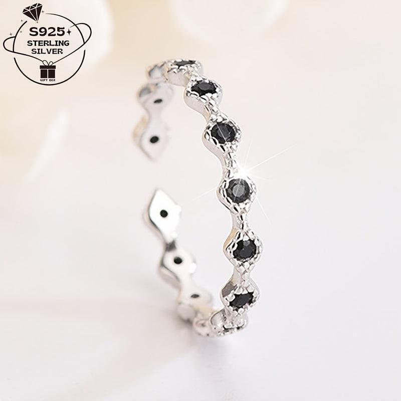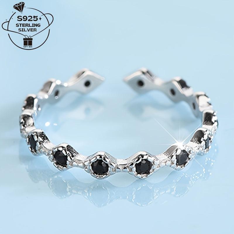This beautiful rhombus-shaped adjustable ring is made of 925 silver and features synthetic zirconia. It is a perfect holiday gift for women.