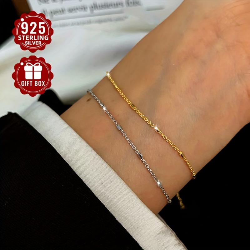 Elegant women's bracelet featuring a 925 pure silvery rhombus bead chain design. Perfect for daily wear, travel, and parties.