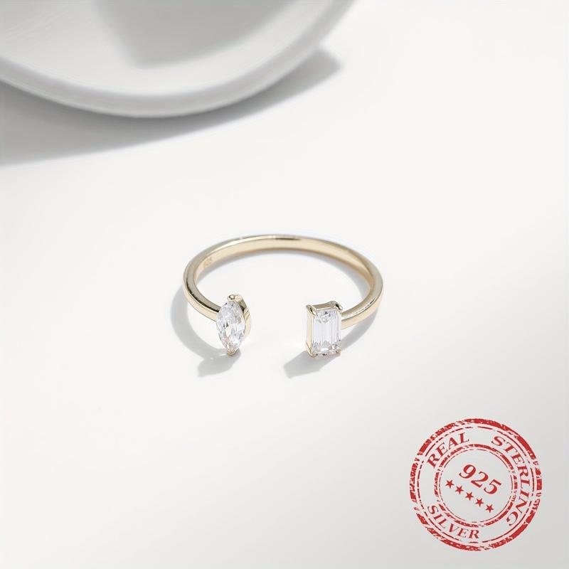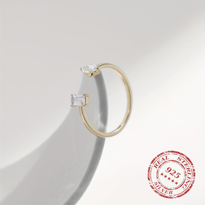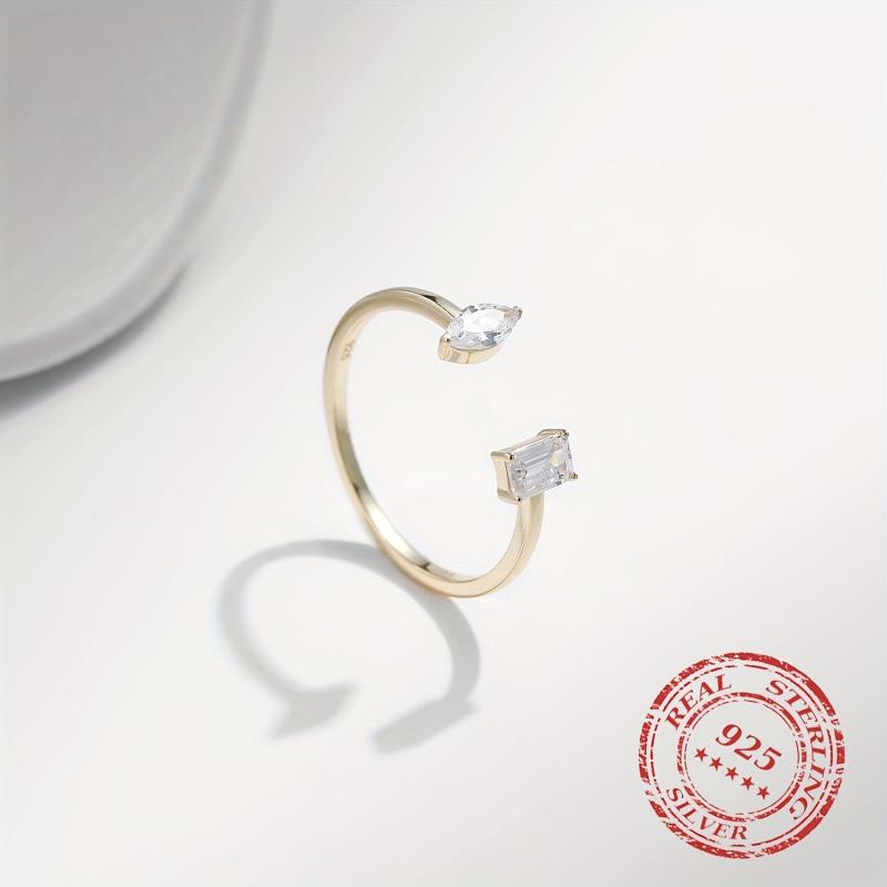 Add a touch of elegance to your outfit with this stunning 925 sterling silver ring featuring a rhombus and rectangle design. The adjustable size makes it a perfect fit for most women.