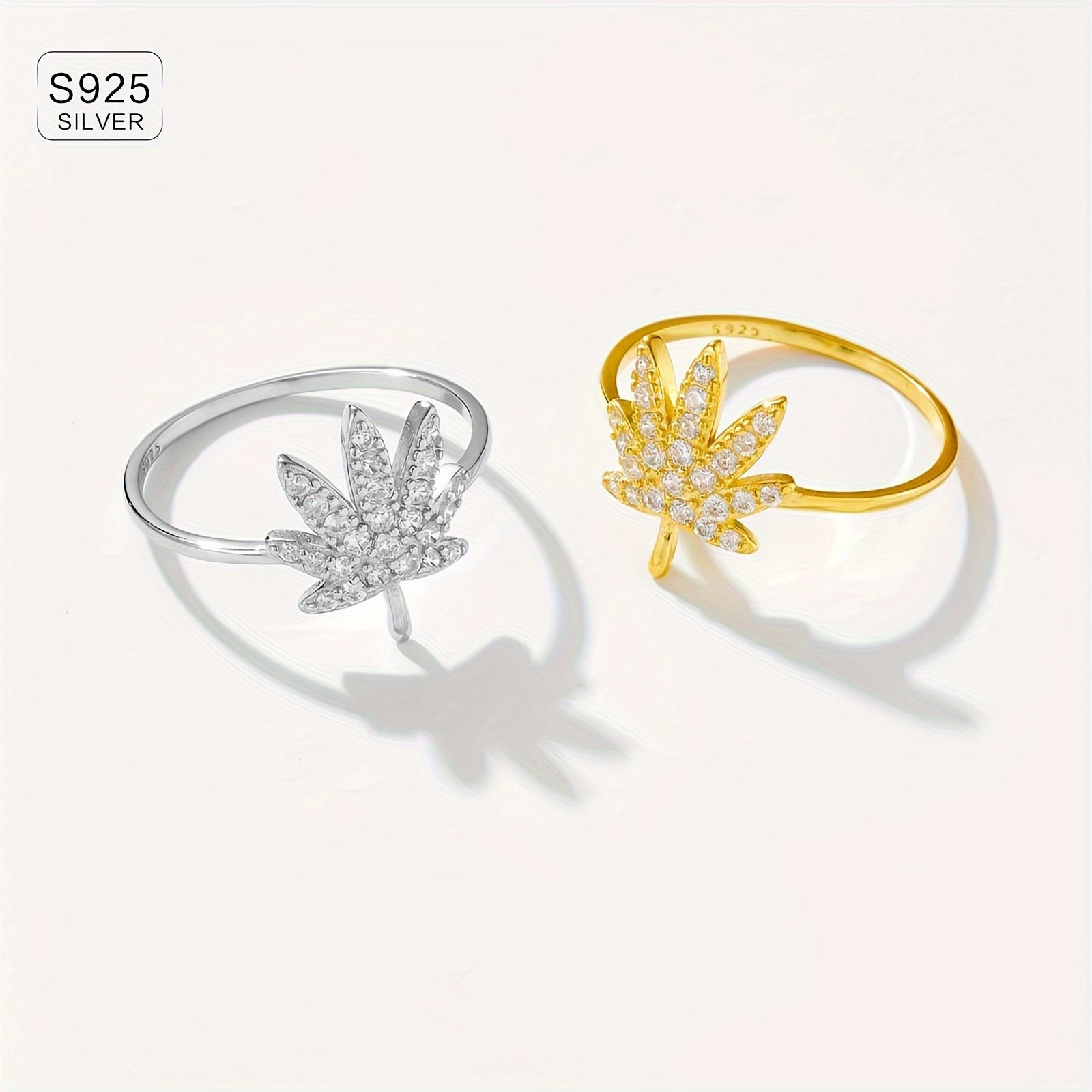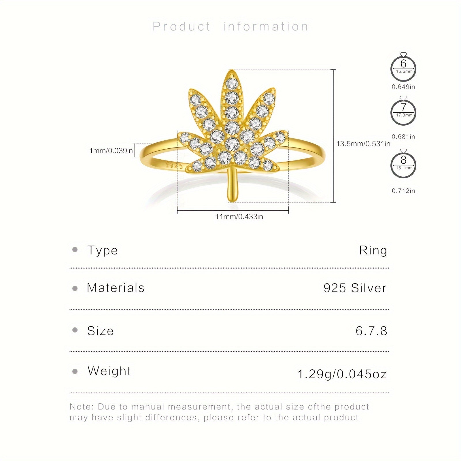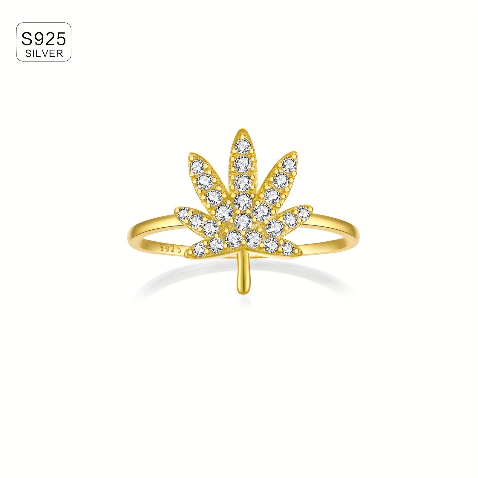 This exquisite ring is made of 925 sterling silver with 18k golden plating. It features a unique maple leaf design adorned with sparkling zirconia. Perfect for everyday wear, parties, or as a gift.