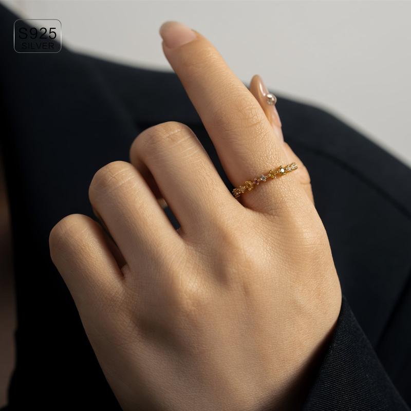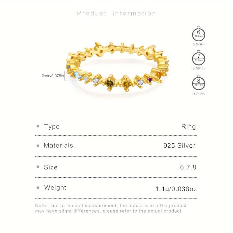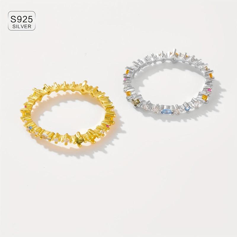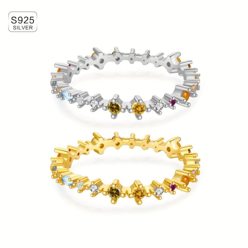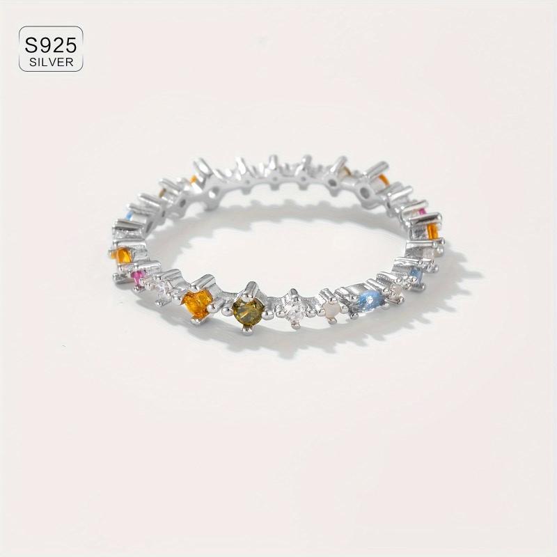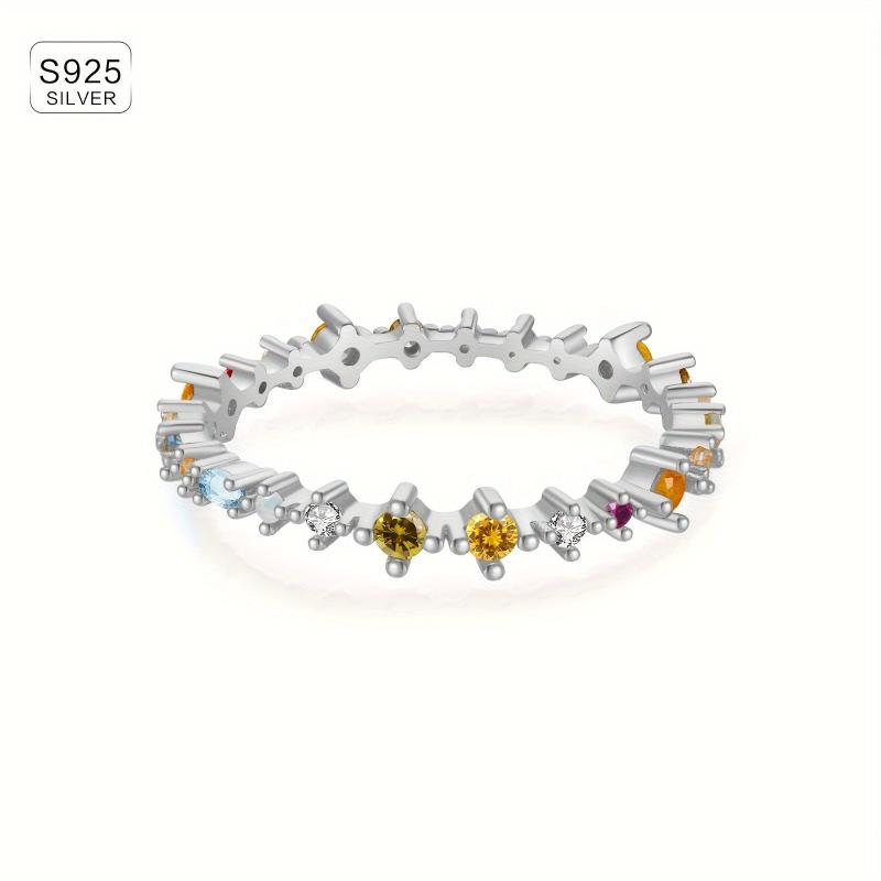 Elegant French-inspired ring made of hypoallergenic 925 sterling silver with a full circle of small colorful cubic zirconia stones.