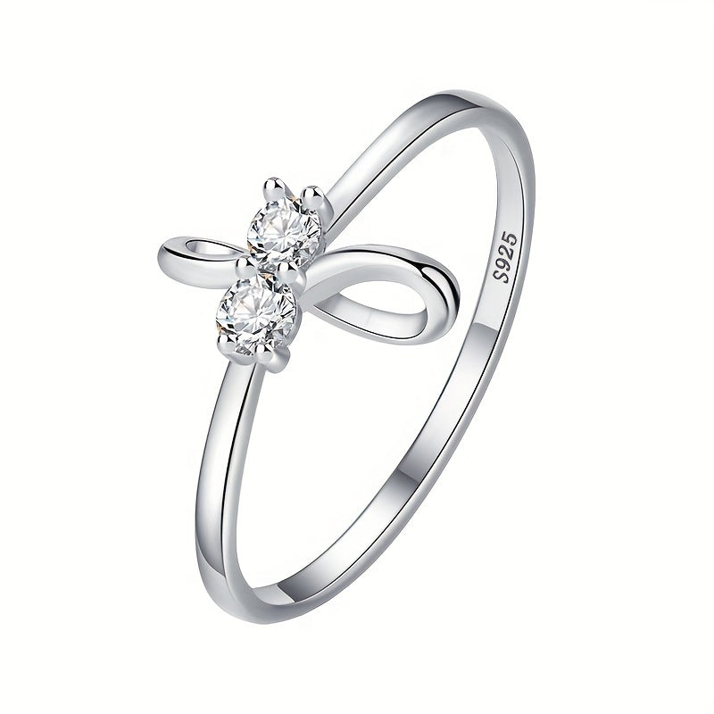 This 925 sterling silver ring features a bow knot design with inlaid shining zircon. Perfect for daily outfits or as a dainty party accessory. Ideal birthday gift for girls.