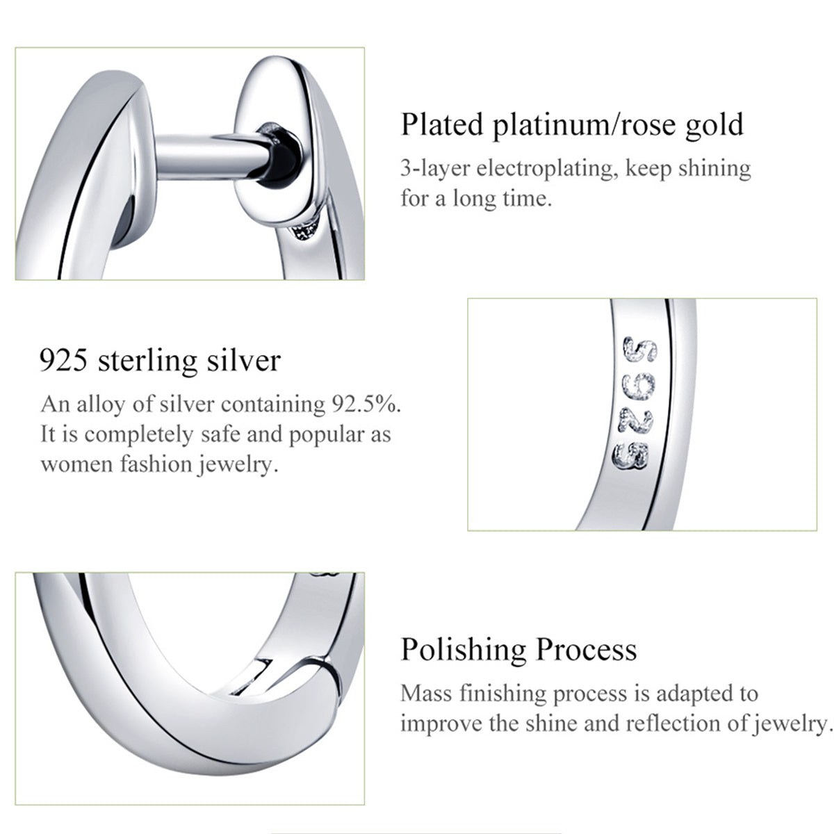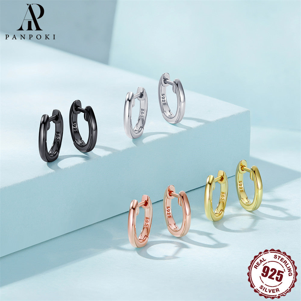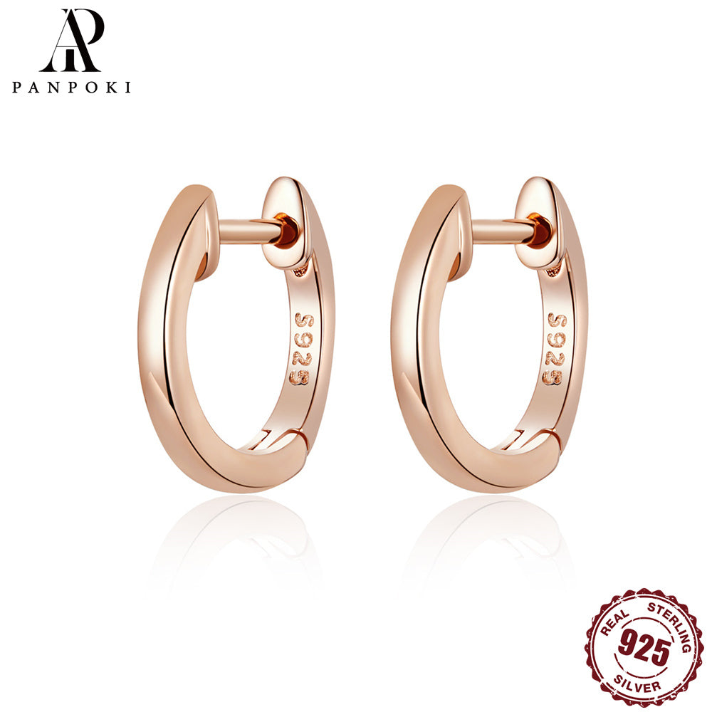 These stylish hoop earrings are made of 925 sterling silver with a mix of silvery, golden, and rose colors. Perfect for adding a fashionable touch to any outfit.