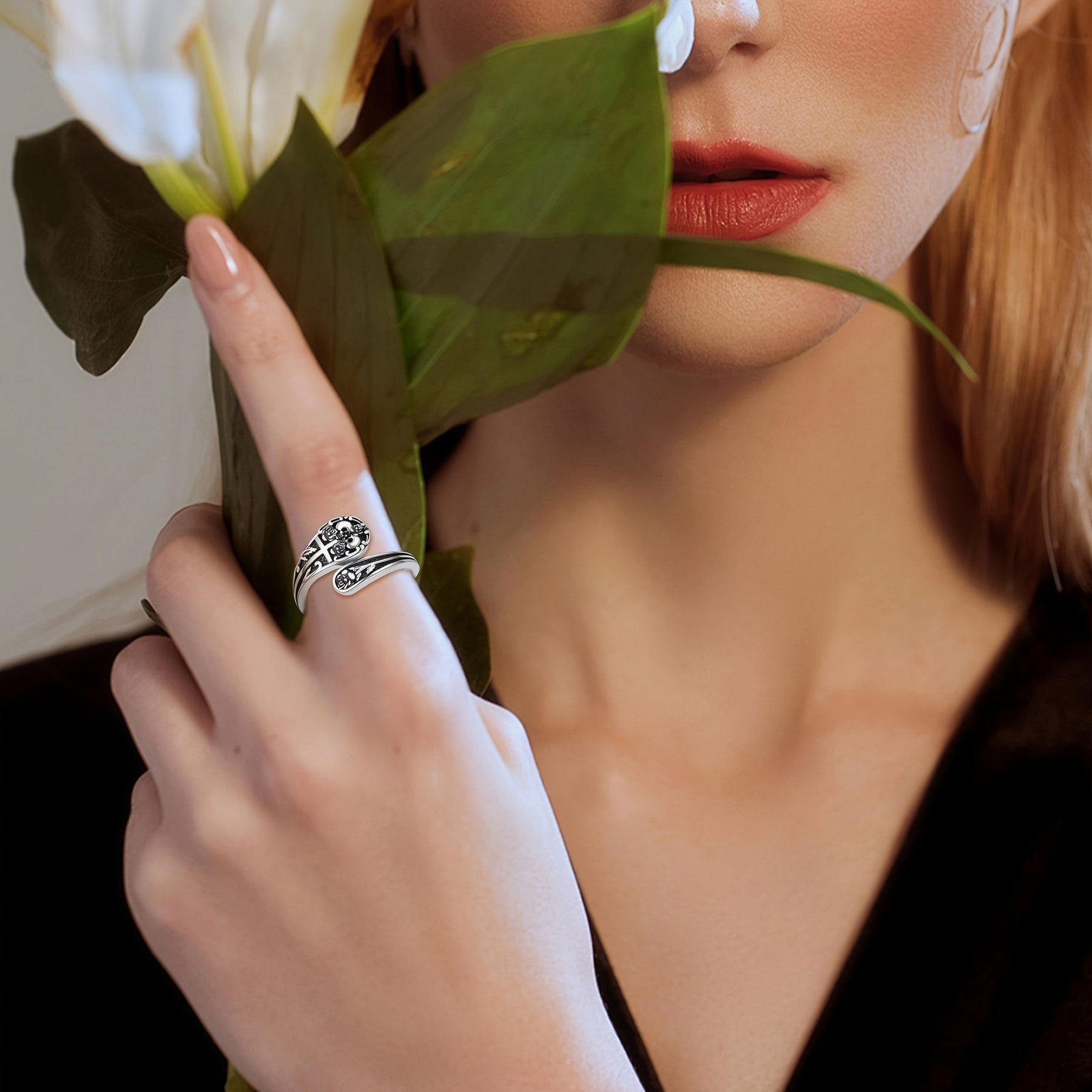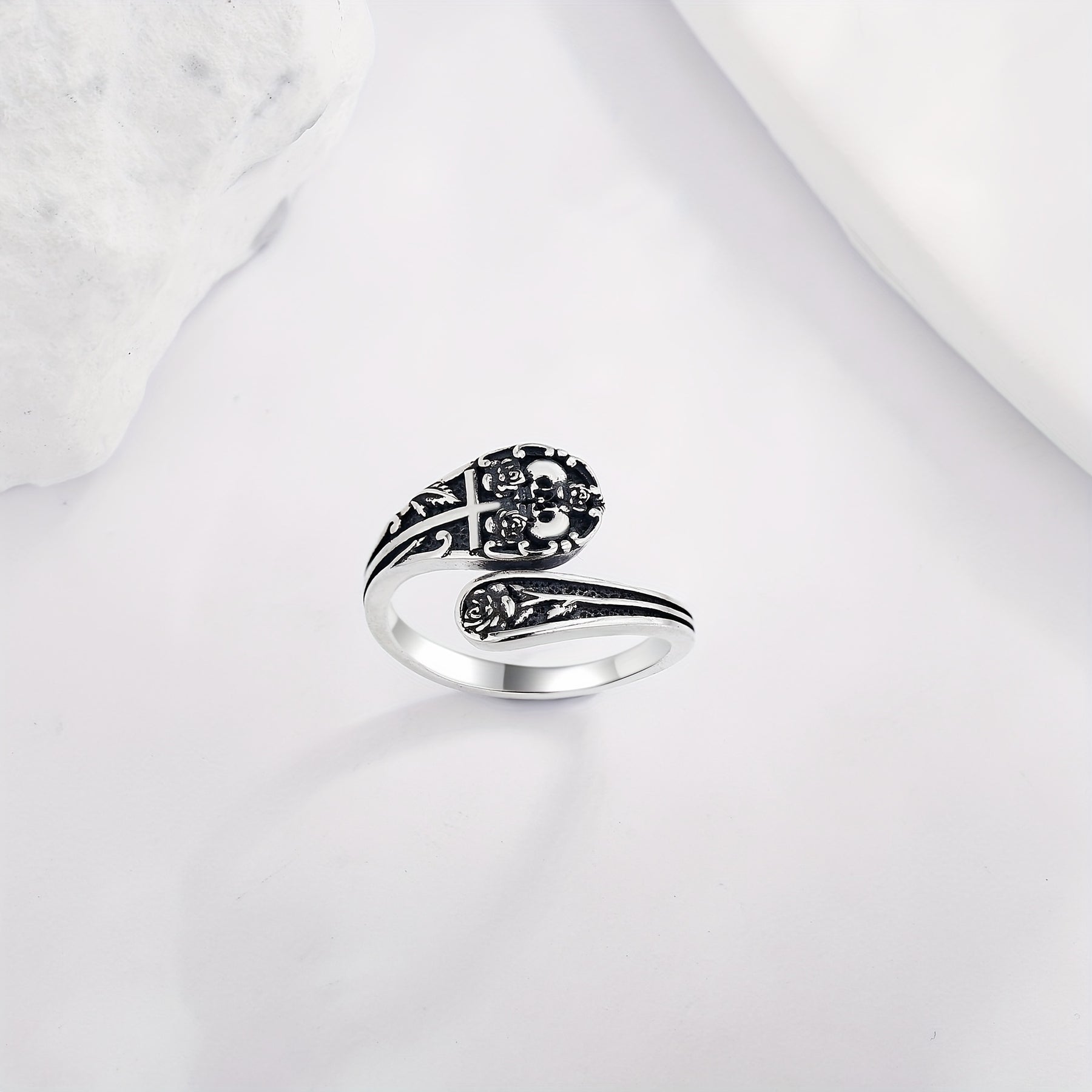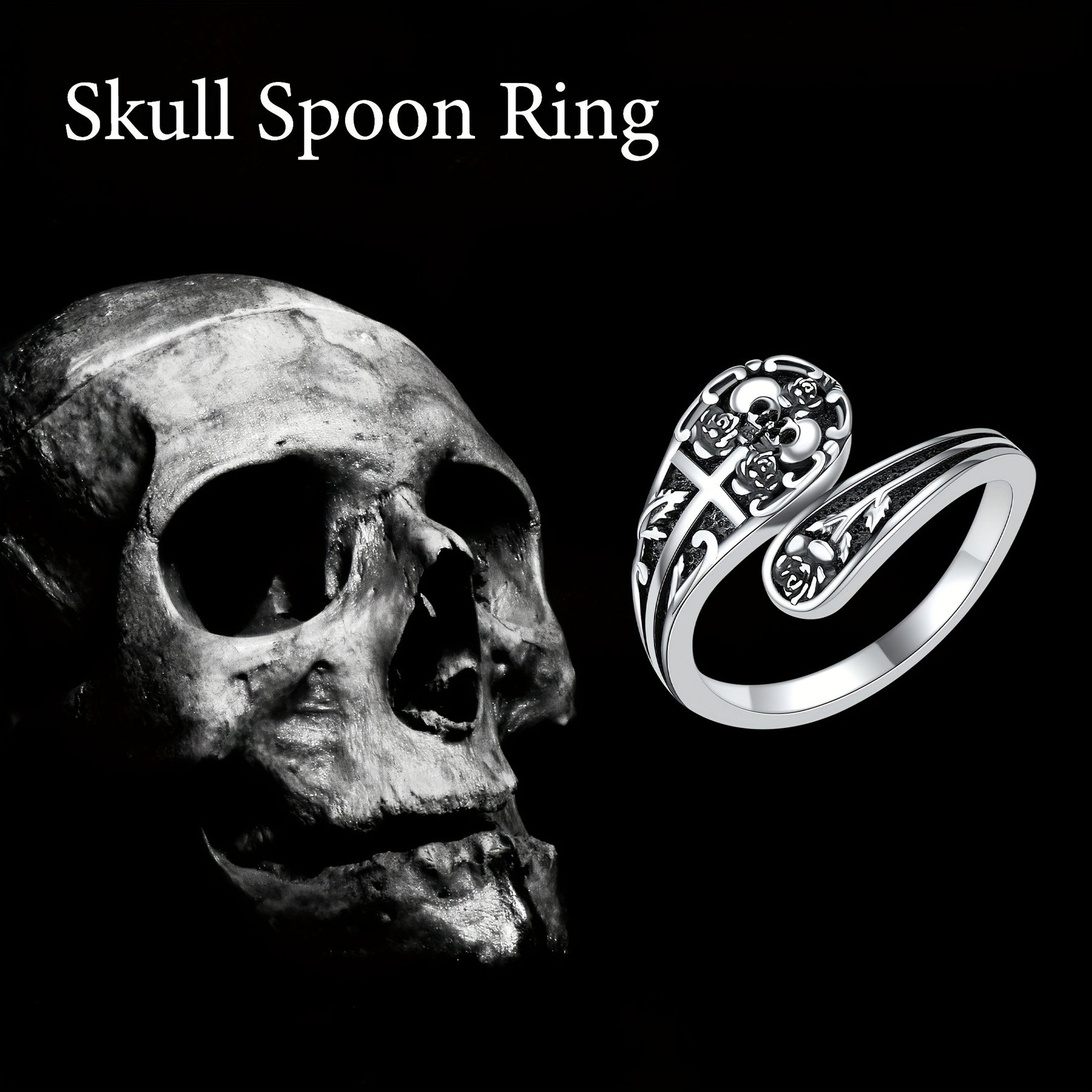 Add a touch of vintage gothic flair with this 925 sterling silver skull spoon ring. Perfect for Halloween or anytime you want to make a statement.